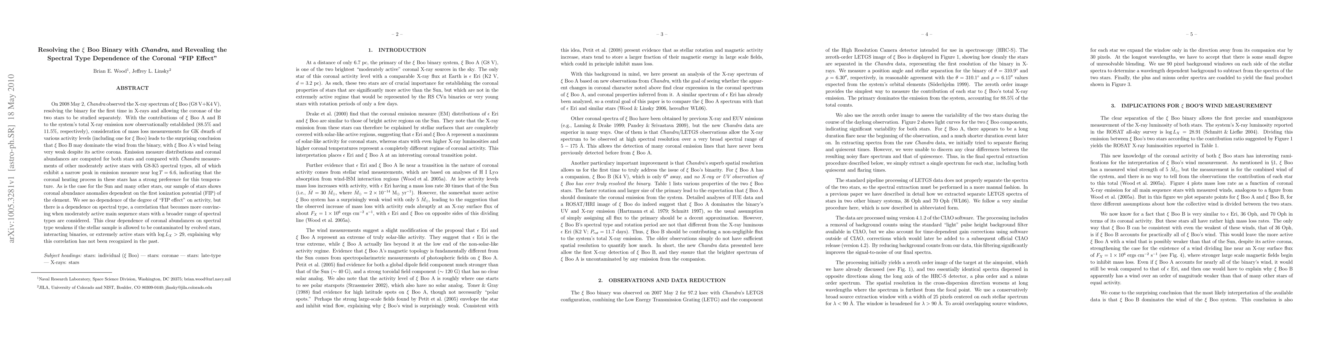 Astronomers used Chandra to study Xi Boo, a binary star system, revealing that one star may dominate the wind from the binary, while the other has a much weaker wind despite its active corona. The study found that coronal abundance anomalies depend on spectral type and have a strong correlation with temperature.