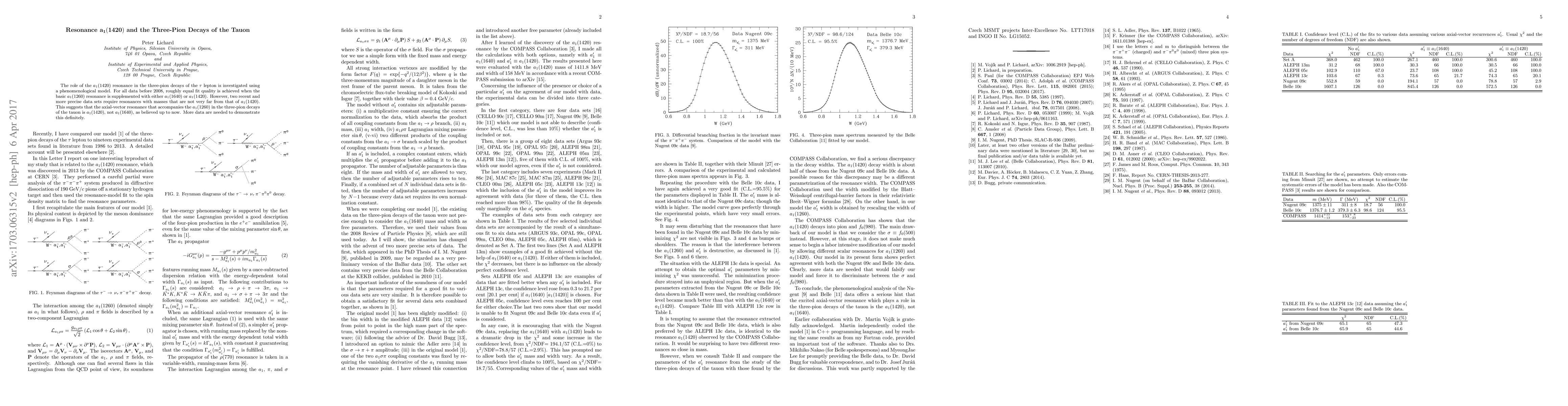 The role of the a_1(1420) resonance in the three-pion decays of the tau lepton is investigated using a phenomenological model. For all data before 2008, roughly equal fit quality is achieved when the basic a_1(1260) resonance is supplemented with either a_1(1640) or a_1(1420). However, two recent and more precise data sets require resonances with masses that are not very far from that of a_1(1420). This suggests that the axial-vector resonance that accompanies the a_1(1260) in the three-pion decays of the tauon is a_1(1420), not a_1(1640), as believed up to now. More data are needed to demonstrate this definitely.