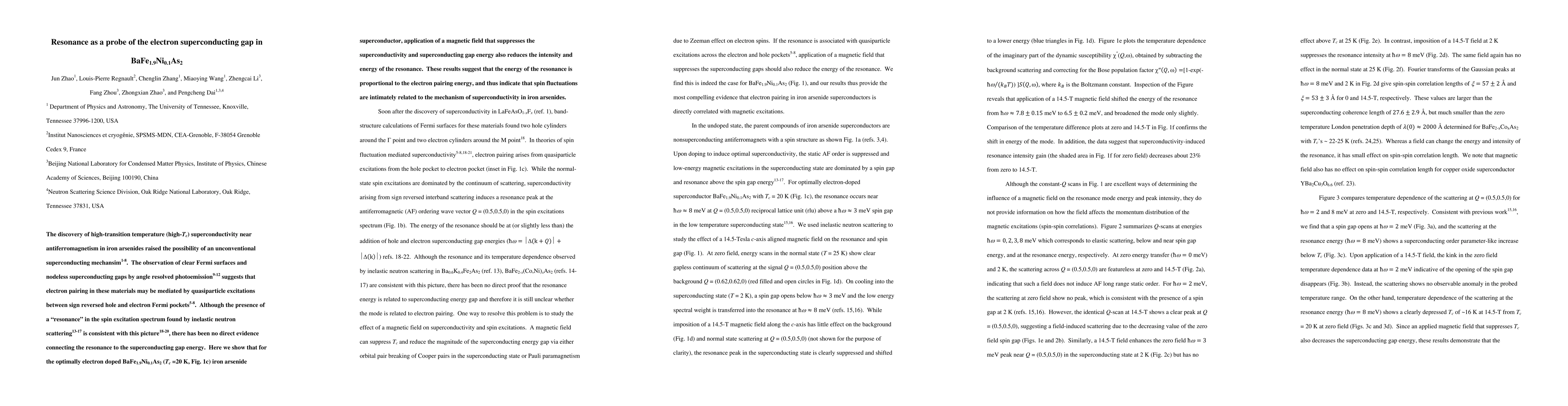 This study demonstrates that the resonance in spin excitations in BaFe1.9Ni0.1As2 correlates with the superconducting gap energy, suggesting that spin fluctuations play a crucial role in mediating electron pairing and superconductivity in iron arsenides. The observed reduction in resonance intensity and energy under magnetic fields supports the unconventional superconducting mechanism.