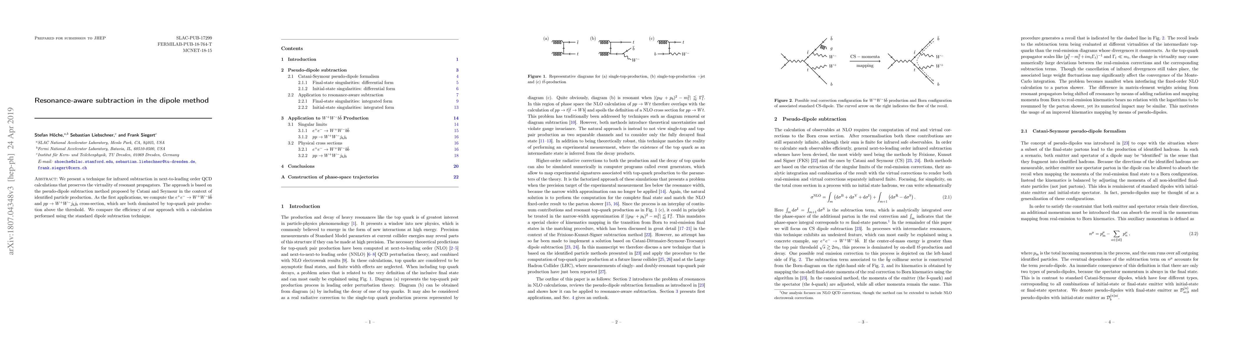 We present a technique for infrared subtraction in next-to-leading order QCD calculations that preserves the virtuality of resonant propagators. The approach is based on the pseudo-dipole subtraction method proposed by Catani and Seymour in the context of identified particle production. As the first applications, we compute the ee > WWbb and pp > WWjbjb cross-section, which are both dominated by top-quark pair production above the threshold. We compare the efficiency of our approach with a calculation performed using the standard dipole subtraction technique.
