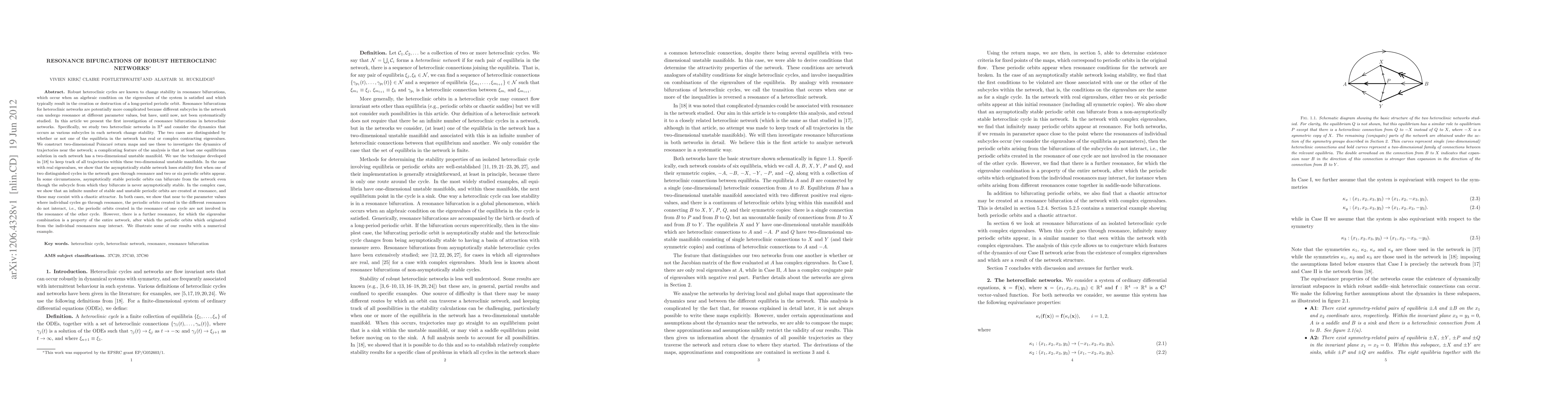 This paper investigates resonance bifurcations in robust heteroclinic networks, focusing on the dynamics of two specific $\R^4$ networks. It reveals that stability changes in these networks, leading to the creation or destruction of long-period periodic orbits, with different subcycles potentially undergoing resonance at distinct parameter values. The study distinguishes cases based on the nature of the eigenvalues of equilibria, showing complex dynamics including the emergence of periodic orbits and potential coexistence with chaotic attractors.