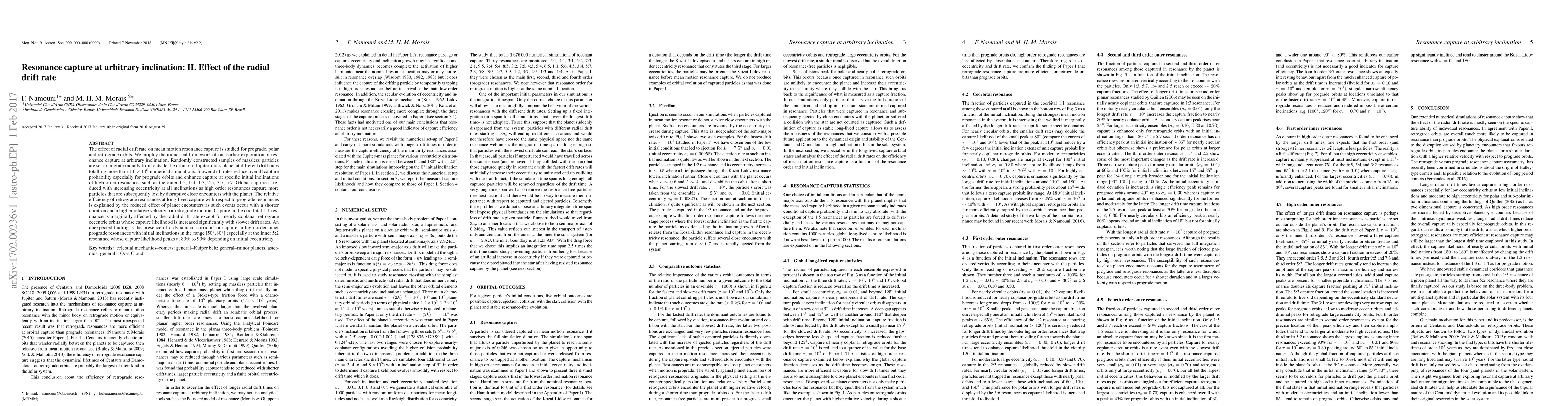The effect of radial drift rate on mean motion resonance capture is studied for prograde, polar and retrograde orbits. We employ the numerical framework of our earlier exploration of resonance capture at arbitrary inclination. Randomly constructed samples of massless particles are set to migrate radially from outside the orbit of a Jupiter-mass planet at different drift rates totalling more than $1.6\times 10^6$ numerical simulations. Slower drift rates reduce overall capture probability especially for prograde orbits and enhance capture at specific initial inclinations of high order resonances such as the outer 1:5, 1:4, 1:3, 2:5, 3:7 and 5:7. Global capture is reduced with increasing eccentricity at all inclinations as high order resonances capture more particles that are subsequently lost by disruptive close encounters with the planet. The relative efficiency of retrograde resonances at long-lived capture with respect to prograde resonances is explained by the reduced effect of planet encounters as such events occur with a shorter duration and a higher relative velocity for retrograde motion. Capture in the coorbital 1:1 resonance is marginally affected by the radial drift rate except for nearly coplanar retrograde eccentric orbits whose capture likelihood is increased significantly with slower drift rates. An unexpected finding is the presence of a dynamical corridor for capture in high order inner prograde resonances with initial inclinations in the range [50$^\circ$,80$^\circ$] especially at the inner 5:2 resonance whose capture likelihood peaks at 80% to 90% depending on initial eccentricity.