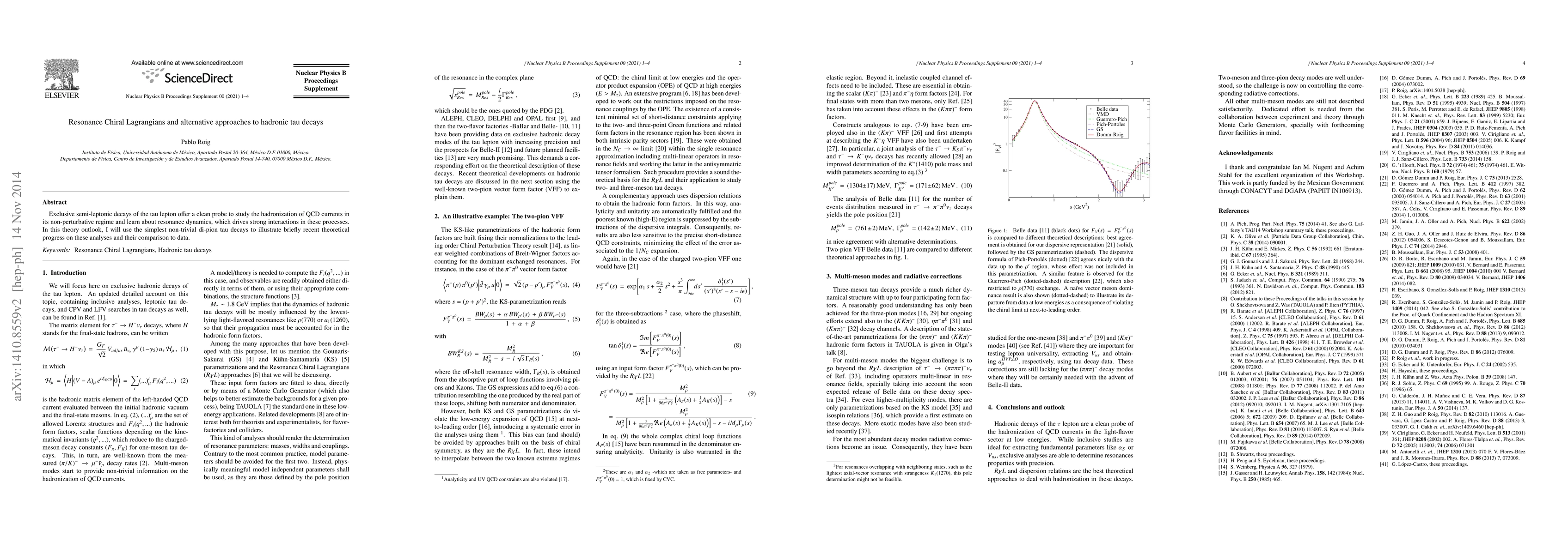 Exclusive semi-leptonic decays of the tau lepton offer a clean probe to study the hadronization of QCD currents in its non-perturbative regime and learn about resonance dynamics, which drives strong interactions in these processes. In this theory outlook, I will use the simplest non-trivial di-pion tau decays to illustrate briefly recent theoretical progress on these analyses and their comparison to data.
