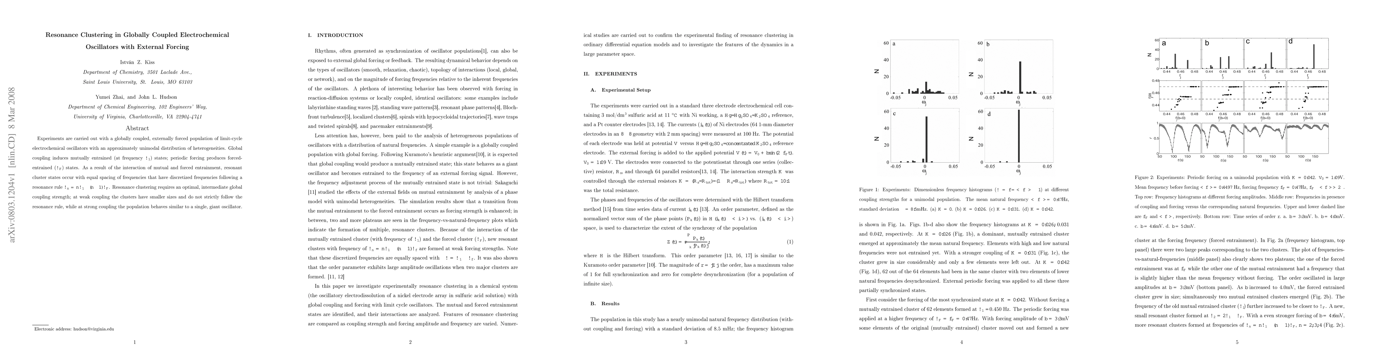 This study investigates resonance clustering in globally coupled electrochemical oscillators subjected to external forcing, revealing that optimal intermediate coupling strength leads to resonant cluster states with frequency spacing following a specific resonance rule. At weak coupling, clusters are smaller and less precise, while strong coupling results in a single, synchronized oscillator.