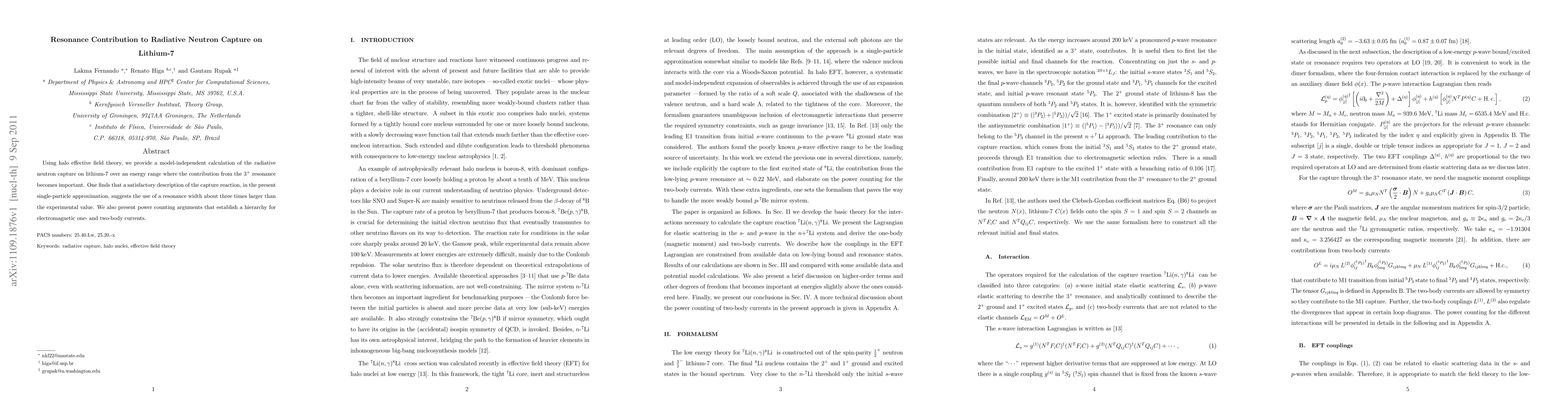 Researchers used a theoretical model to study radiative neutron capture on lithium-7, finding that a resonance width three times larger than the experimental value provides a satisfactory description of the reaction. The study also established a hierarchy for electromagnetic currents.