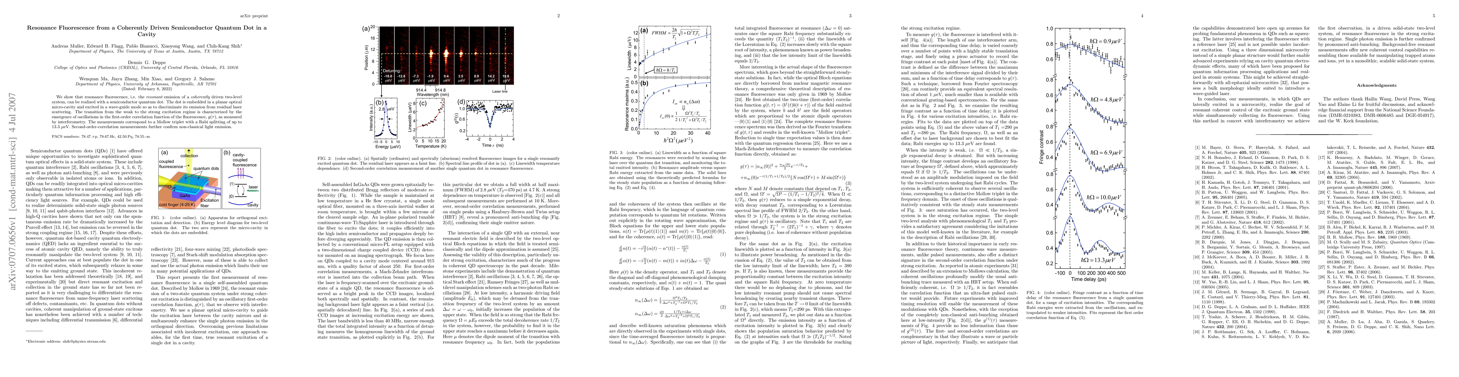 This paper demonstrates resonance fluorescence from a coherently driven semiconductor quantum dot in a cavity, showing oscillations in the first-order correlation function and confirming non-classical light emission via second-order correlation measurements, with a Rabi splitting of up to 13.3 micro eV.