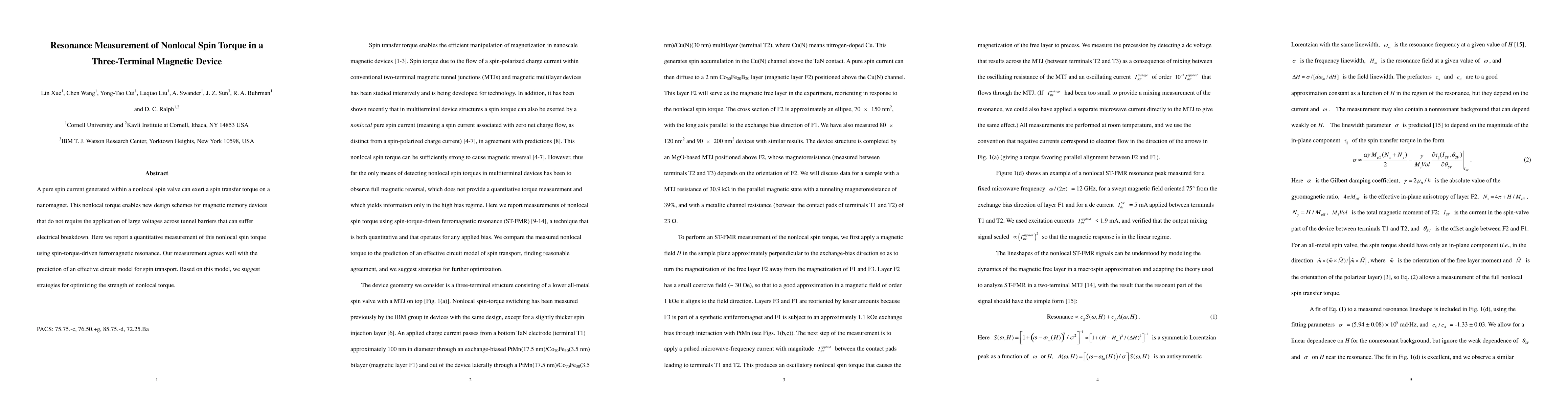 The paper presents a quantitative measurement of nonlocal spin torque using ST-FMR and proposes strategies for optimizing the strength of nonlocal torque based on an effective circuit model for spin transport.