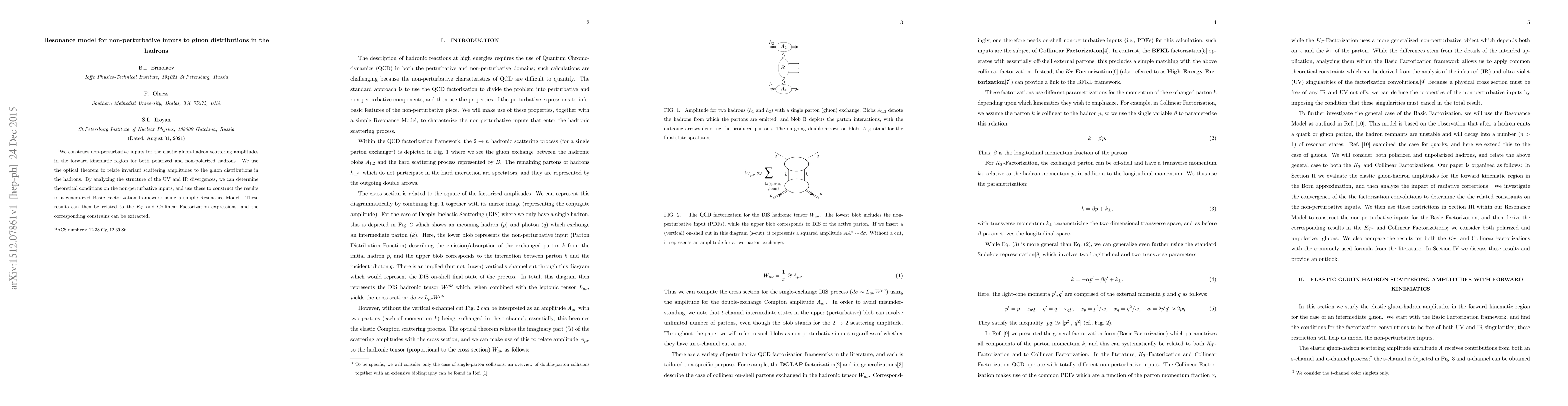 We construct non-perturbative inputs for the elastic gluon-hadron scattering amplitudes in the forward kinematic region for both polarized and non-polarized hadrons. We use the optical theorem to relate invariant scattering amplitudes to the gluon distributions in the hadrons. By analyzing the structure of the UV and IR divergences, we can determine theoretical conditions on the non-perturbative inputs, and use these to construct the results in a generalized Basic Factorization framework using a simple Resonance Model. These results can then be related to the K_T and Collinear Factorization expressions, and the corresponding constrains can be extracted.