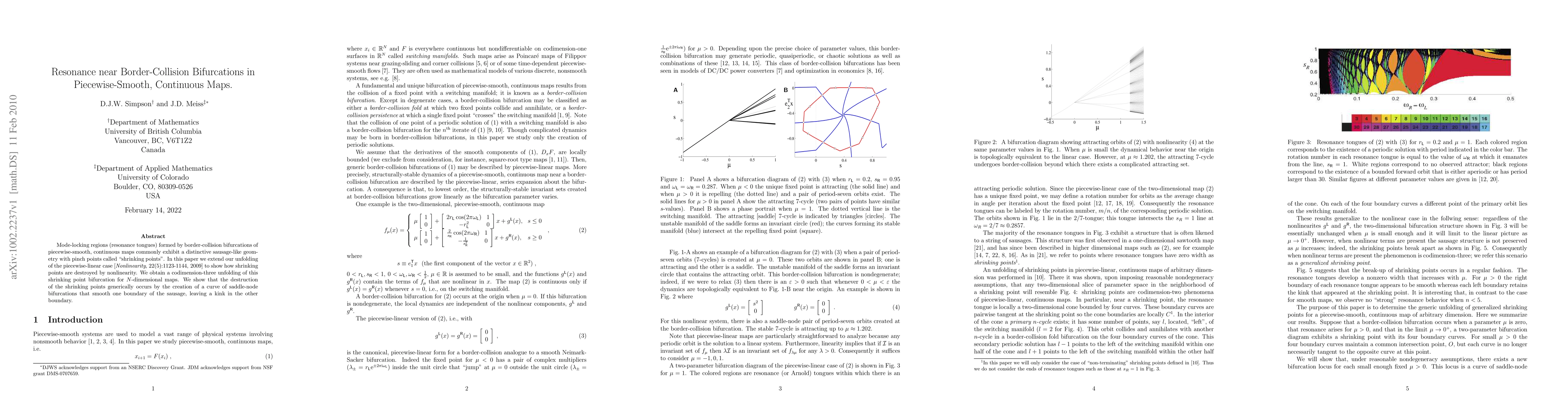 This paper investigates the destruction of shrinking points in mode-locking regions near border-collision bifurcations in piecewise-smooth, continuous maps. It extends previous work on the piecewise-linear case, presenting a codimension-three unfolding that shows how nonlinearity leads to the creation of a curve of saddle-node bifurcations, smoothing one boundary of the sausage-like resonance tongues and leaving a kink in the other.