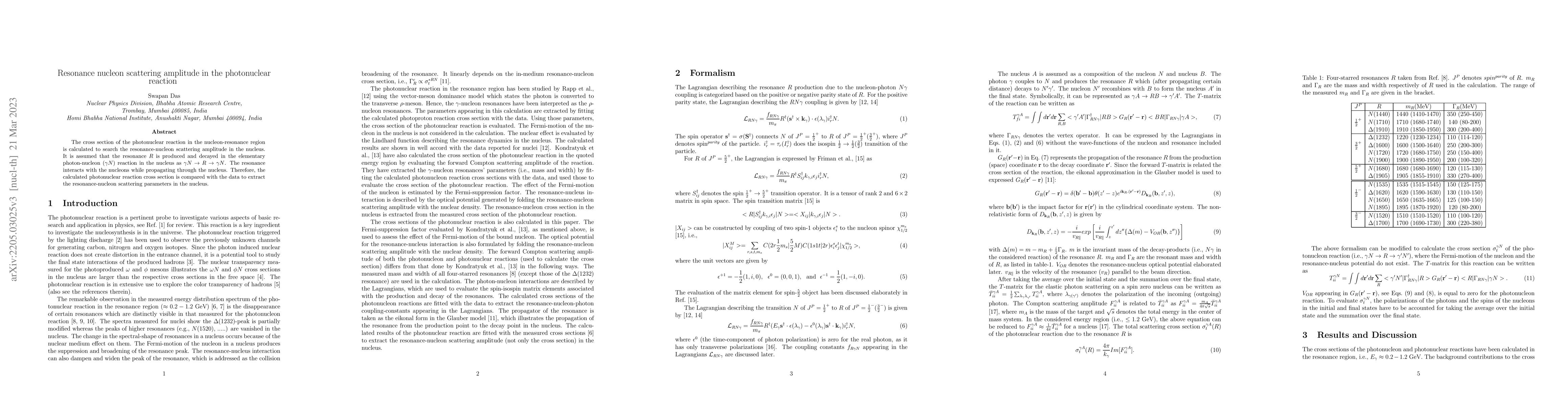 This paper calculates the photonuclear reaction cross section to determine the resonance-nucleon scattering amplitude in the nucleus, assuming the resonance $R$ is produced and decays in elementary photon-nucleon reactions. The extracted resonance-nucleon scattering parameters are compared with experimental data.