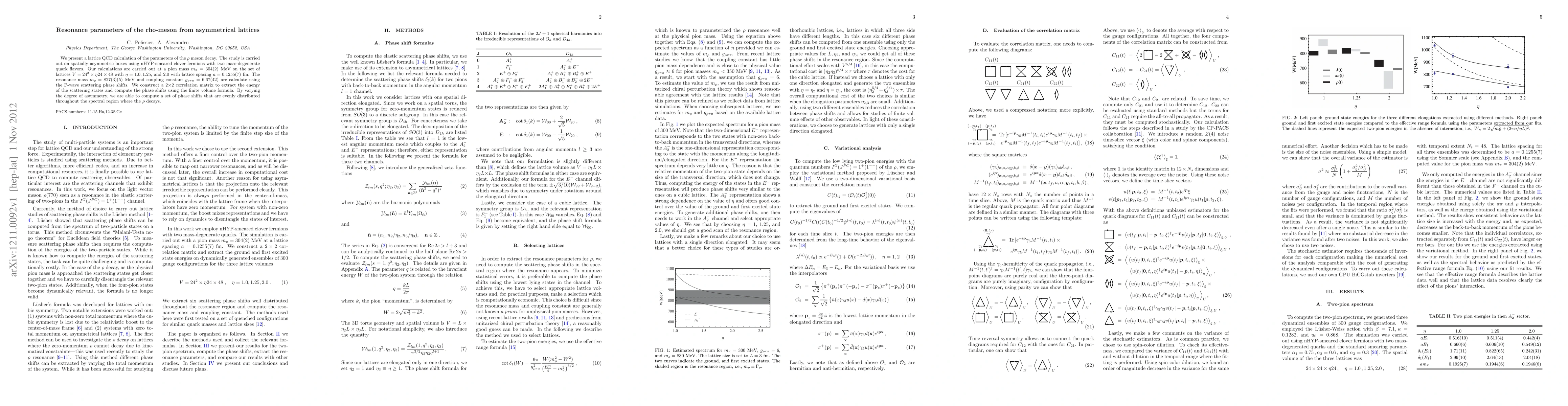 We present a lattice QCD calculation of the parameters of the $\rho$ meson decay. The study is carried out on spatially asymmetric boxes using nHYP-smeared clover fermions with two mass-degenerate quark flavors. Our calculations are carried out at a pion mass $m_\pi=304(2)$ MeV on the set of lattices $V=24^2\times \eta 24\times48$ with $\eta=1.0,1.25$, and 2.0 with lattice spacing $a=0.1255(7)$ fm. The resonance mass $m_\rho=827(3)(5)$ MeV and coupling constant $g_{\rho\pi\pi}=6.67(42)$ are calculate using the P-wave scattering phase shifts. We construct a 2$\times$2 correlation matrix to extract the energy of the scattering states and compute the phase shifts using the finite volume formula. By varying the degree of asymmetry, we are able to compute a set of phase shifts that are evenly distributed throughout the spectral region where the $\rho$ decays.