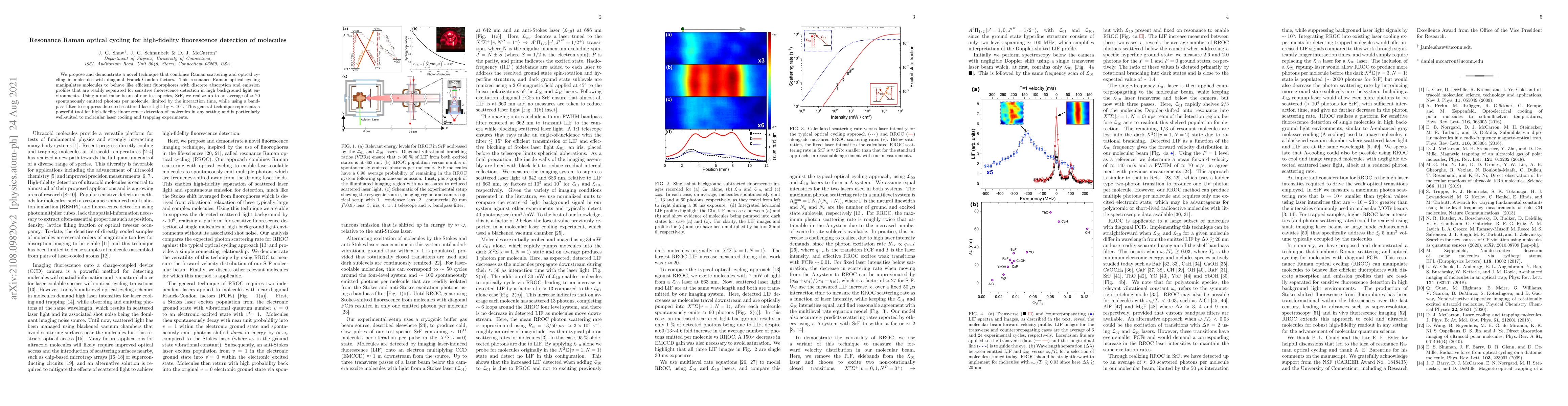 The development and demonstration of Resonance Raman Optical Cycling (RROC), a technique that manipulates molecules with diagonal Franck-Condon factors to behave like efficient fluorophores for high-fidelity fluorescence detection in high background light environments.