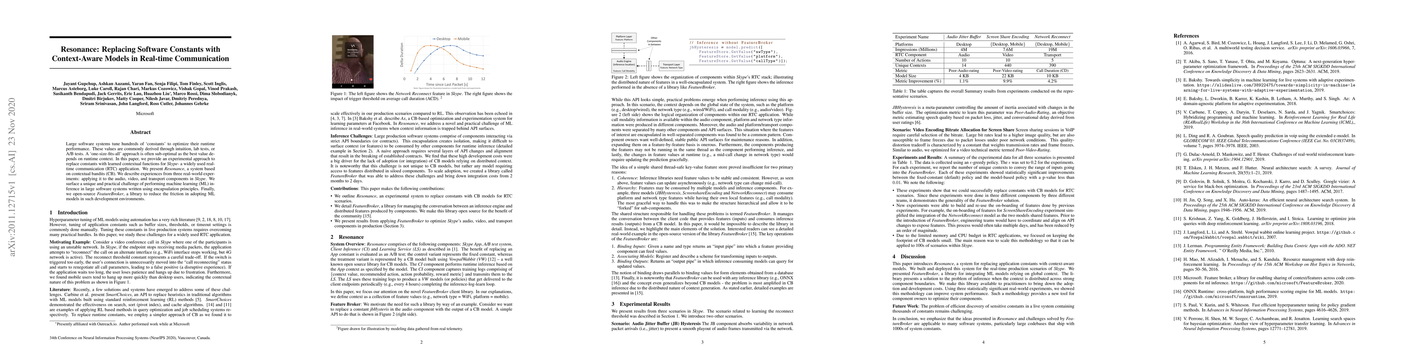 Researchers developed Resonance, a system that replaces software constants with learned contextual functions to optimize real-time communication performance in Skype, overcoming the limitations of traditional 'one-size-fits-all' approaches.