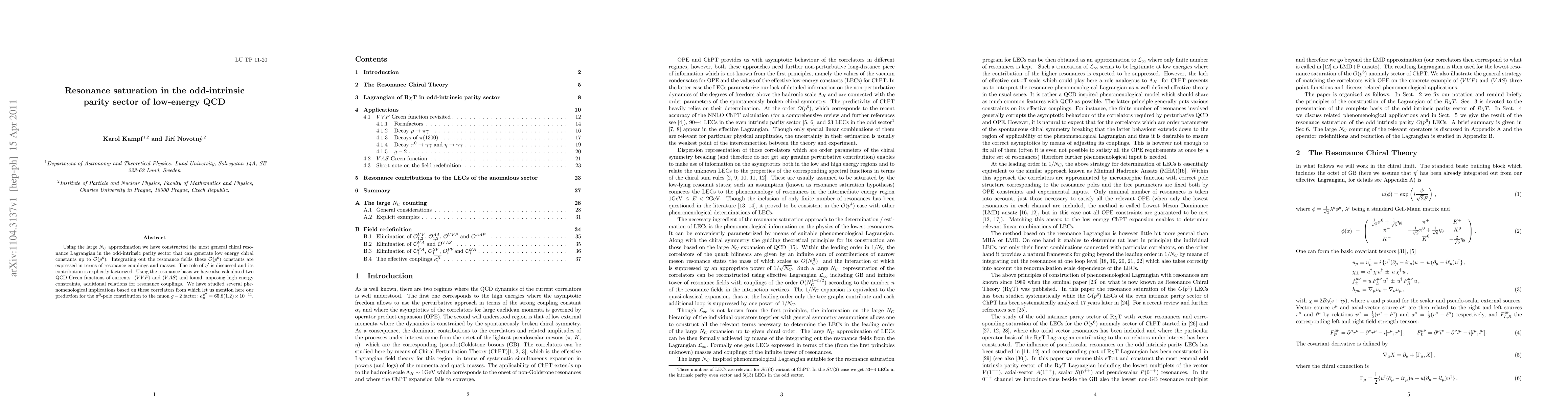 Researchers developed a new framework for understanding resonance saturation in QCD, which predicts a specific contribution to the muon g-2 factor, with an estimated value of $65.8(1.2) imes 10^{-11}$.