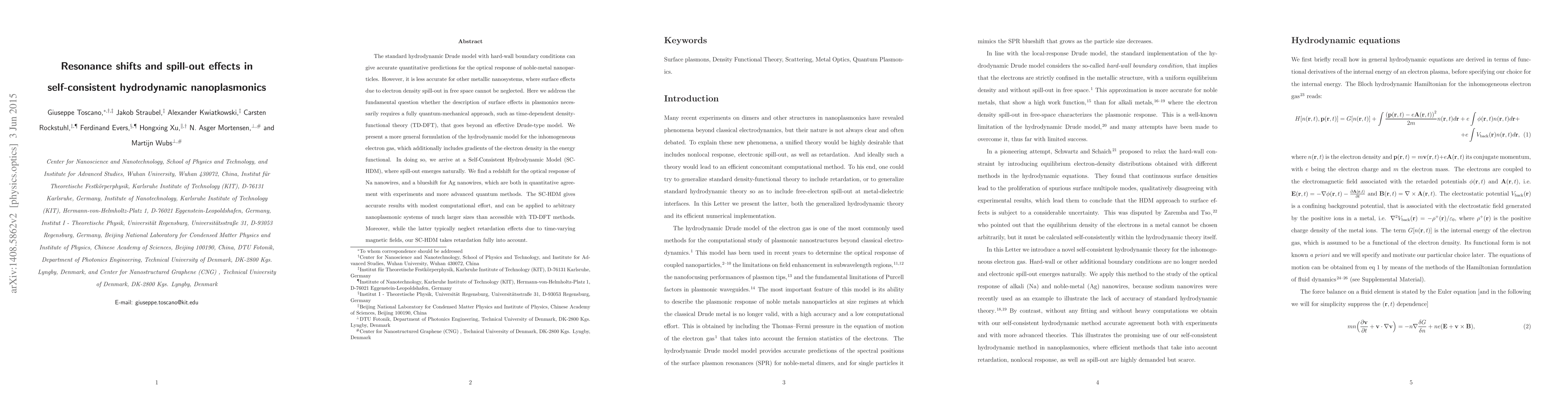 The standard hydrodynamic Drude model with hard-wall boundary conditions can give accurate quantitative predictions for the optical response of noble-metal nanoparticles. However, it is less accurate for other metallic nanosystems, where surface effects due to electron density spill-out in free space cannot be neglected. Here we address the fundamental question whether the description of surface effects in plasmonics necessarily requires a fully quantum-mechanical approach, such as time-dependent density-functional theory (TD-DFT), that goes beyond an effective Drude-type model. We present a more general formulation of the hydrodynamic model for the inhomogeneous electron gas, which additionally includes gradients of the electron density in the energy functional. In doing so, we arrive at a Self-Consistent Hydrodynamic Model (SC-HDM), where spill-out emerges naturally. We find a redshift for the optical response of Na nanowires, and a blueshift for Ag nanowires, which are both in quantitative agreement with experiments and more advanced quantum methods. The SC-HDM gives accurate results with modest computational effort, and can be applied to arbitrary nanoplasmonic systems of much larger sizes than accessible with TD-DFT methods. Moreover, while the latter typically neglect retardation effects due to time-varying magnetic fields, our SC-HDM takes retardation fully into account.