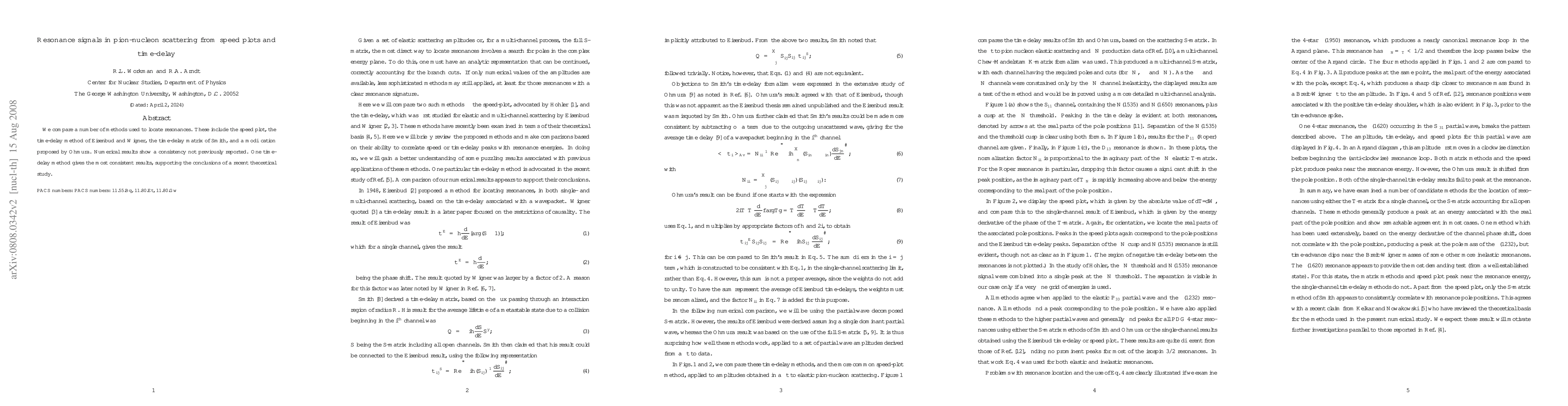 We compare a number of methods used to locate resonances. These include the speed plot, the time-delay method of Eisenbud and Wigner, the time-delay matrix of Smith, and a modification by Ohmura. Numerical results show a consistency not previously reported. One time delay method gives the most consistent results, supporting the conclusions of a recent theoretical study.