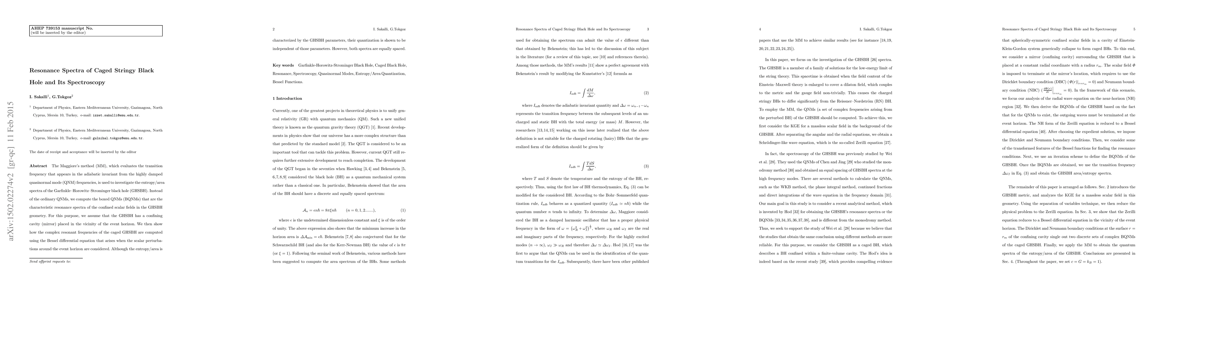 This paper investigates the resonance spectra of a caged stringy black hole using Maggiore's method to compute boxed quasinormal modes (BQNMs) instead of ordinary QNMs. The study reveals that the complex resonant frequencies are determined by a Bessel differential equation and that the quantization of entropy/area spectra is parameter-independent, though equally spaced.