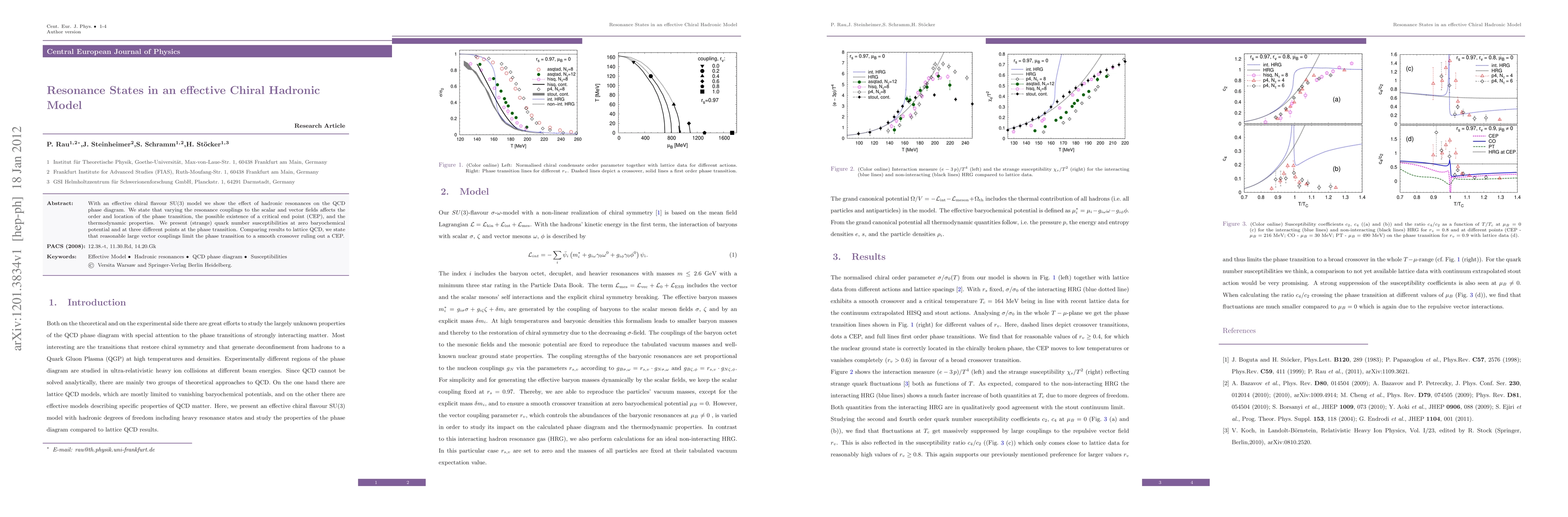 With an effective chiral flavour SU(3) model we show the effect of hadronic resonances on the QCD phase diagram. We state that varying the resonance couplings to the scalar and vector fields affects the order and location of the phase transition, the possible existence of a critical end point (CEP), and the thermodynamic properties. We present (strange) quark number susceptibilities at zero baryochemical potential and at three different points at the phase transition. Comparing results to lattice QCD, we state that reasonable large vector couplings limit the phase transition to a smooth crossover ruling out a CEP.