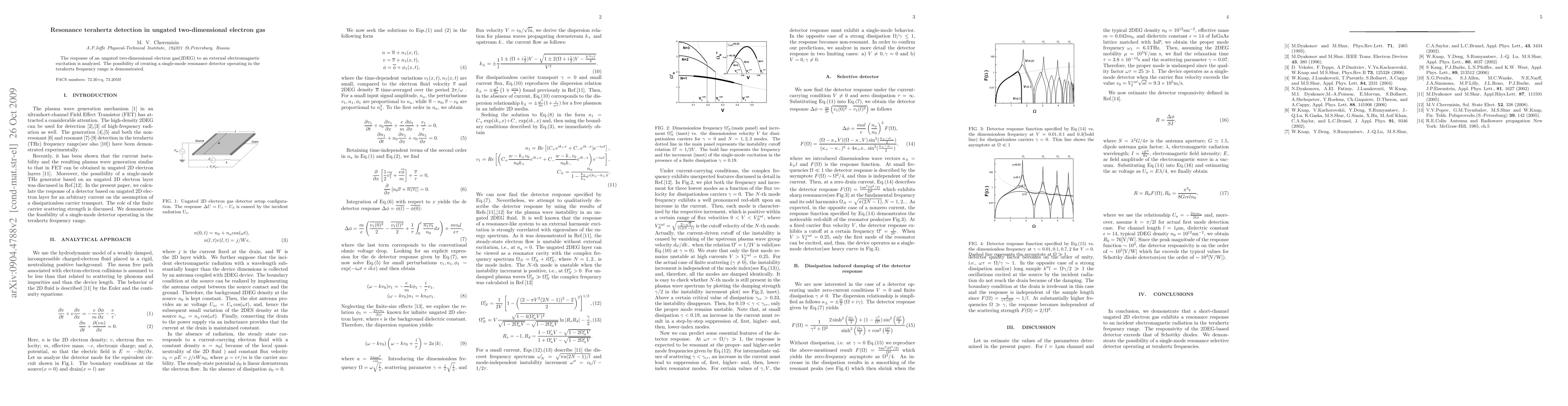 This paper investigates the response of an ungated two-dimensional electron gas to external electromagnetic excitation, demonstrating the feasibility of a single-mode resonance detector operating in the terahertz frequency range.
