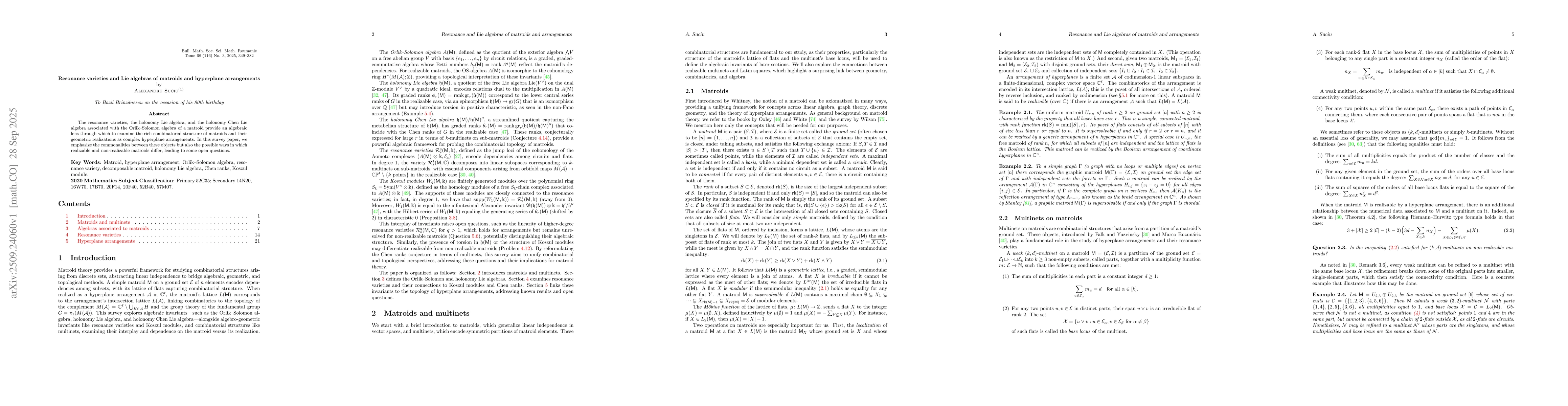 Introduced a framework linking matroid combinatorics with topological invariants through resonance varieties and Lie algebras, providing explicit constructions for correspondence between multinet structures and resonance components.