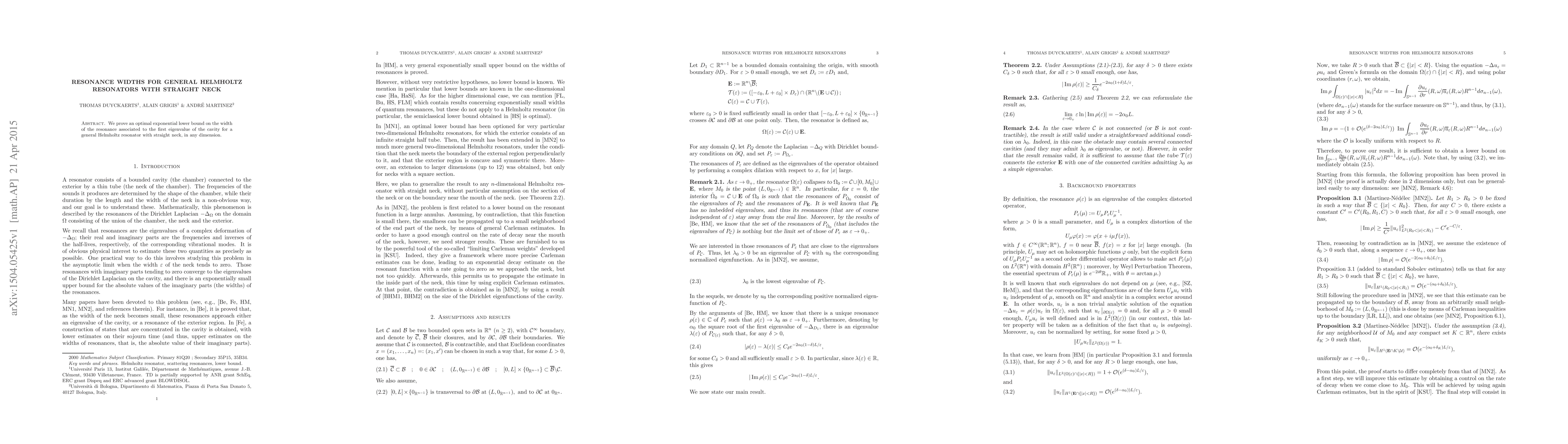This research proves an optimal lower bound on the resonance width of a general Helmholtz resonator with a straight neck in any dimension, setting a new limit for its frequency range.