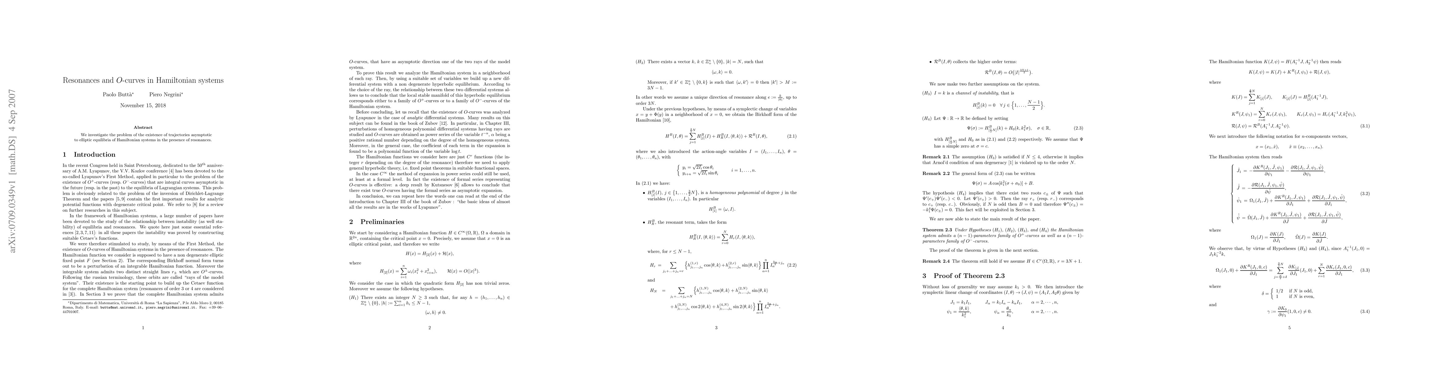 We investigate the problem of the existence of trajectories asymptotic to elliptic equilibria of Hamiltonian systems in the presence of resonances.
