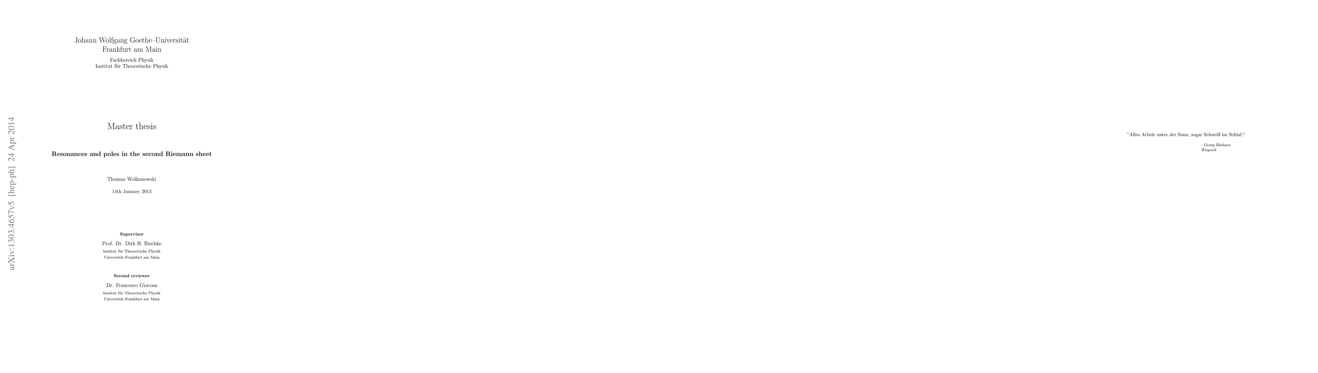 This paper explores the properties of unstable particles and scalar hadronic resonances using quantum mechanical and quantum field theoretical models, focusing on the complex poles in the second Riemann sheet of the Feynman propagator. It investigates the dynamics of scalar particles, the influence of hadronic loop contributions, and the emergence of stable states below the two-pion threshold in a hadronic system.