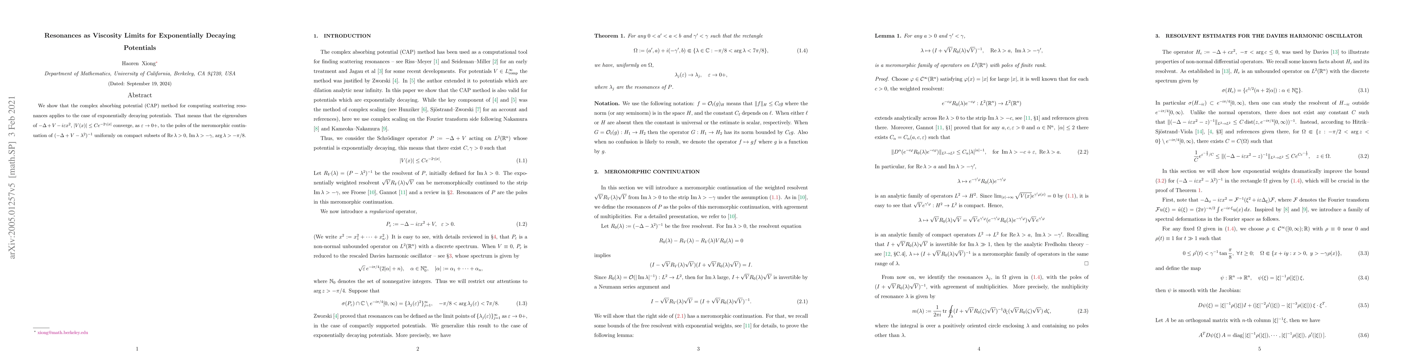 This paper shows that complex absorbing potential can be applied to exponentially decaying potentials, allowing for the computation of scattering resonances. It establishes a convergence condition for eigenvalues as epsilon approaches 0.