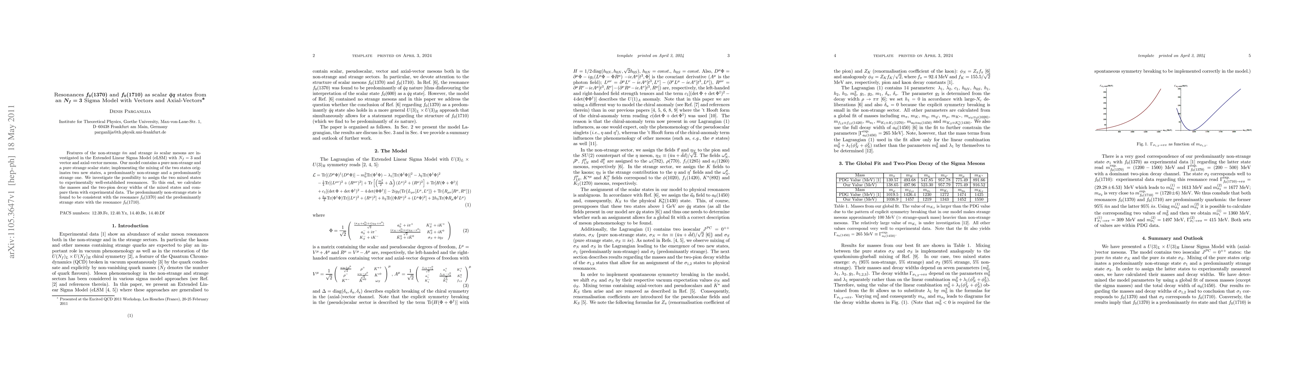 This paper investigates the properties of non-strange and strange scalar mesons in an Extended Linear Sigma Model with vector and axial-vector mesons, identifying two mixed states that correspond to the experimentally observed resonances f0(1370) and f0(1710). The study compares calculated masses and decay widths with experimental data to validate the assignments.