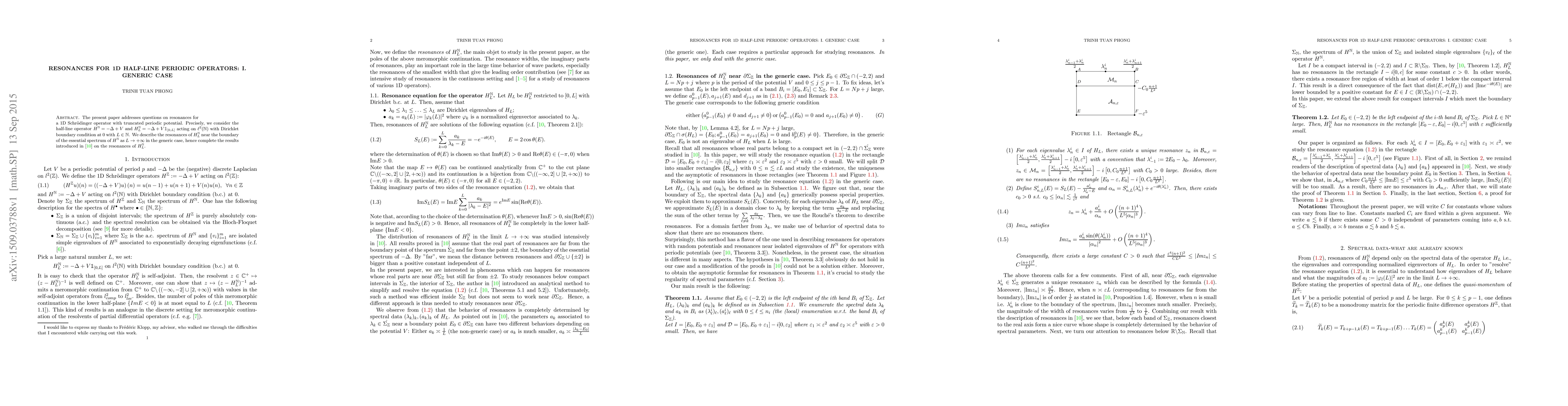 This paper investigates resonances for a 1D Schrödinger operator with a truncated periodic potential, focusing on the half-line operator $H^{\mathbb N}_L$ as $L$ approaches infinity. It describes the resonances near the essential spectrum's boundary in the generic case.
