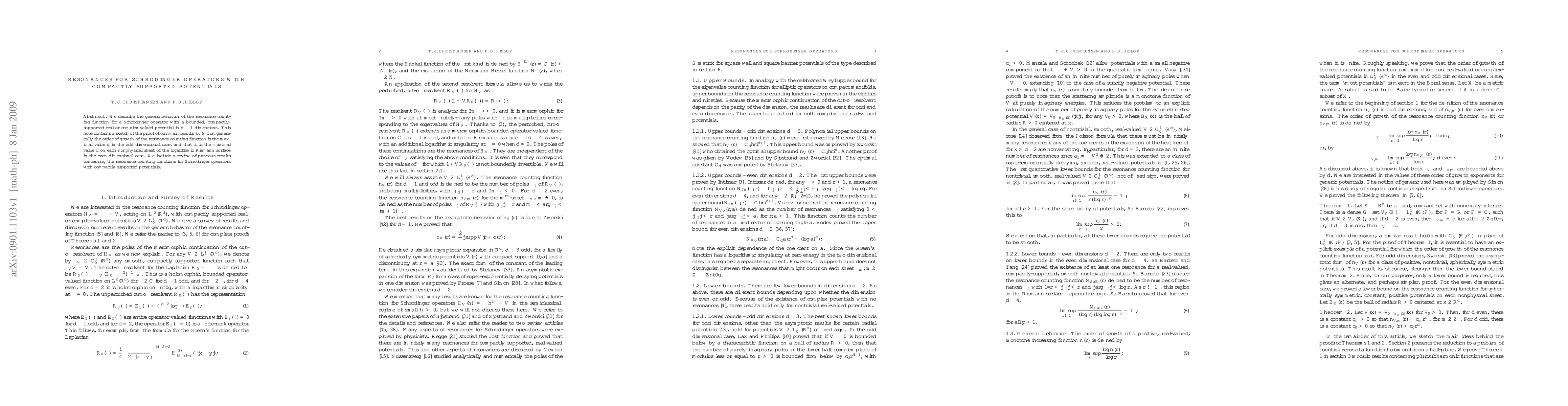 We describe the generic behavior of the resonance counting function for a Schr\"odinger operator with a bounded, compactly-supported real or complex valued potential in $d \geq 1$ dimensions. This note contains a sketch of the proof of our main results \cite{ch-hi1,ch-hi2} that generically the order of growth of the resonance counting function is the maximal value $d$ in the odd dimensional case, and that it is the maximal value $d$ on each nonphysical sheet of the logarithmic Riemann surface in the even dimensional case. We include a review of previous results concerning the resonance counting functions for Schr\"odinger operators with compactly-supported potentials.