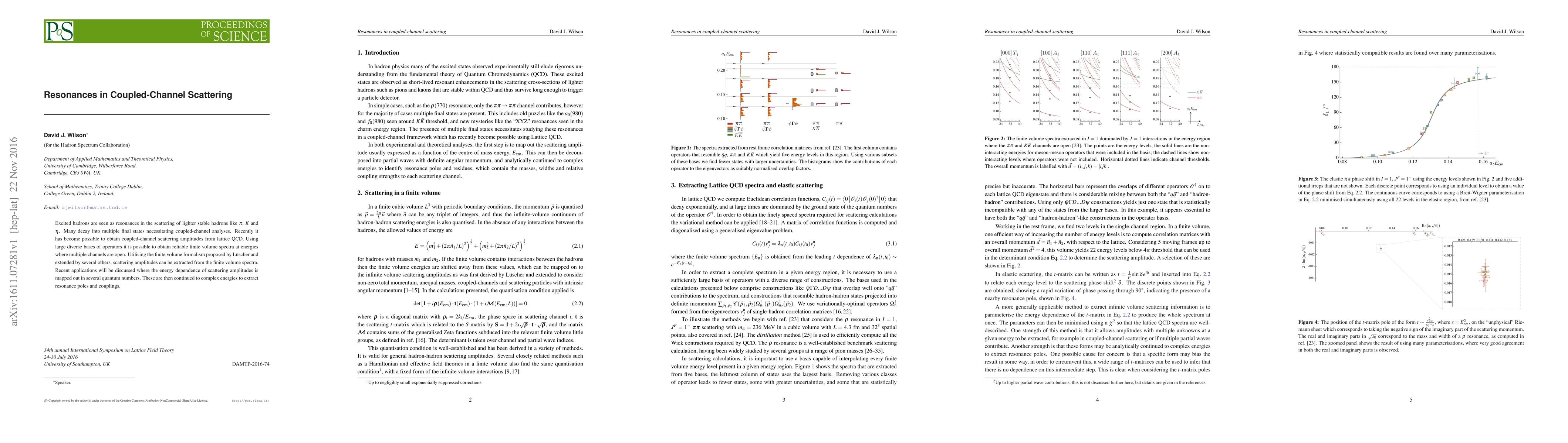 This paper explores the resonances in coupled-channel scattering of stable hadrons like $\pi$, $K$, and $\eta$, using lattice QCD to obtain scattering amplitudes. It discusses the extraction of these amplitudes from finite volume spectra and their application to determine resonance poles and couplings.