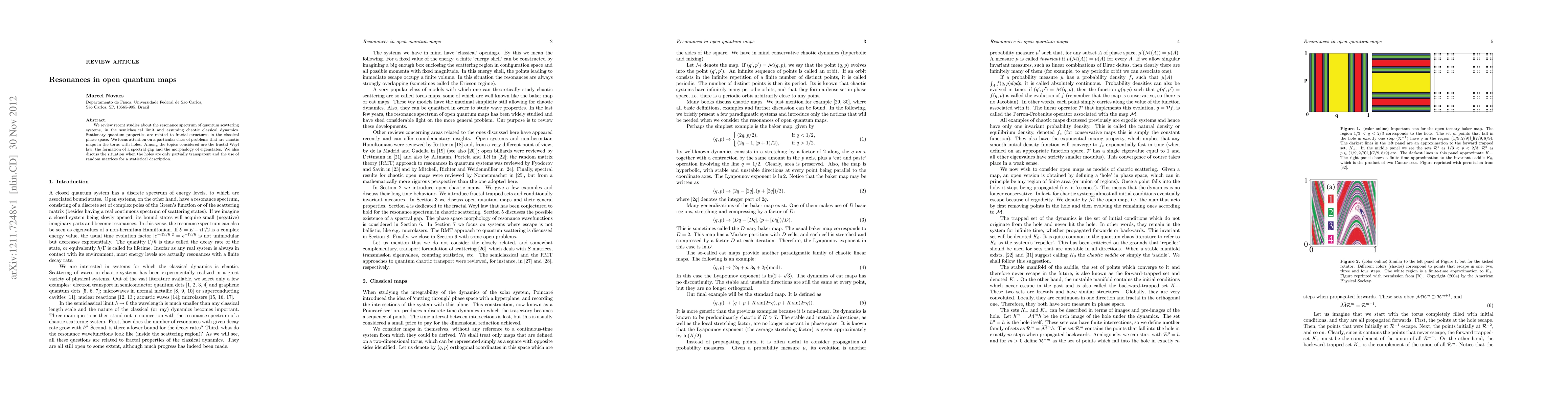 This paper reviews recent research on resonance spectra in quantum scattering systems, highlighting fractal phase space structures in chaotic classical dynamics. It focuses on torus-with-holes maps, discussing fractal Weyl laws, spectral gaps, eigenstate morphology, and the application of random matrices for statistical description when holes are partially transparent.