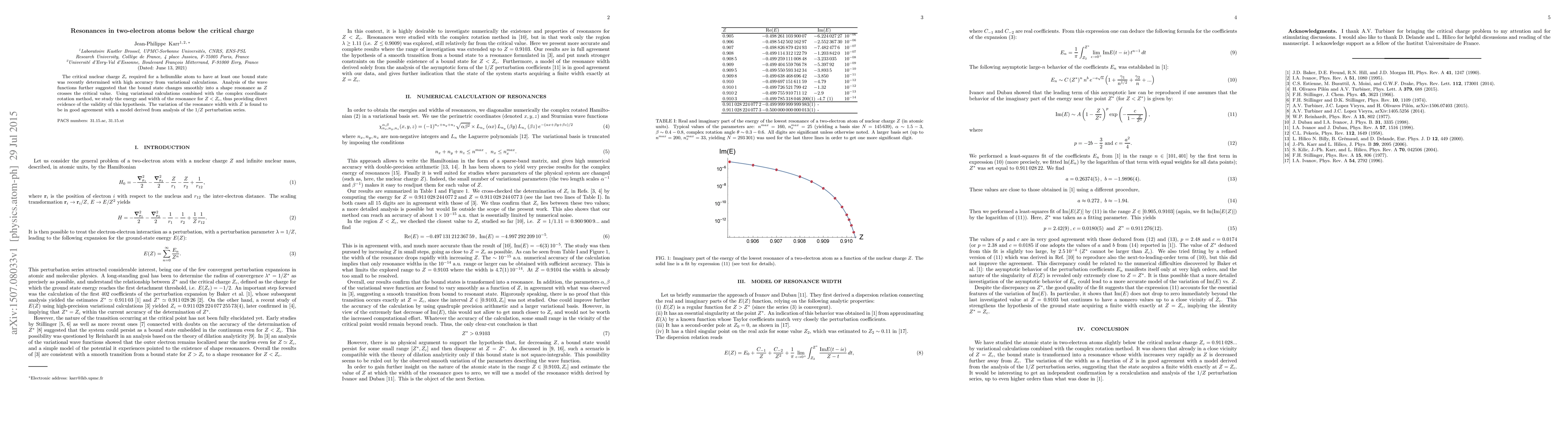 The critical nuclear charge Zc required for a heliumlike atom to have at least one bound state was recently determined with high accuracy from variational calculations. Analysis of the wave functions further suggested that the bound state changes smoothly into a shape resonance as Z crosses the critical value. Using variational calculations combined with the complex coordinate rotation method, we study the energy and width of the resonance for Z \textless{} Zc, thus providing direct evidence of the validity of this hypothesis. The variation of the resonance width with Z is found to be in good agreement with a model derived from analysis of the 1/Z perturbation series.