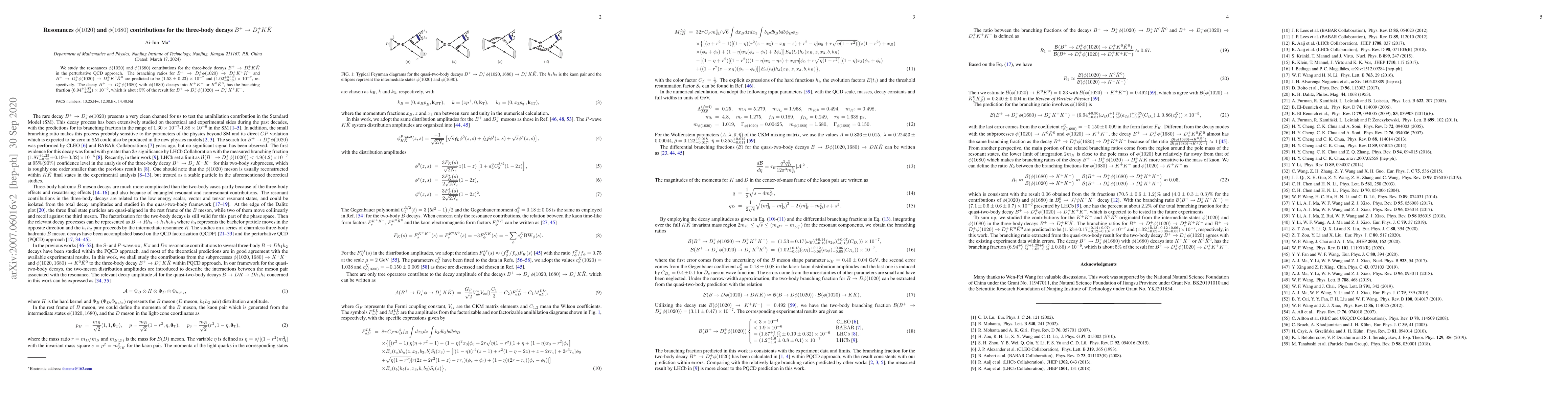 We study the resonances $\phi(1020)$ and $\phi(1680)$ contributions for the three-body decays $B^+ \to D_s^+K\bar K$ in the perturbative QCD approach. The branching ratios for $B^+ \to D_s^+\phi(1020) \to D_s^+ K^+K^-$ and $B^+ \to D_s^+\phi(1020) \to D_s^+ K^0\bar{K}^0$ are predicted to be $(1.53\pm0.23) \times 10^{-7}$ and $(1.02^{+0.19}_{-0.13} )\times 10^{-7}$, respectively. The decay $B^+ \to D_s^+\phi(1680)$ with $\phi(1680)$ decays into $K^+K^-$ or $K^0\bar{K}^0$, has the branching fraction $(6.94^{+1.83}_{-2.02})\times 10^{-9}$, which is about $5\%$ of the result for $B^+ \to D_s^+\phi(1020) \to D_s^+ K^+K^-$.