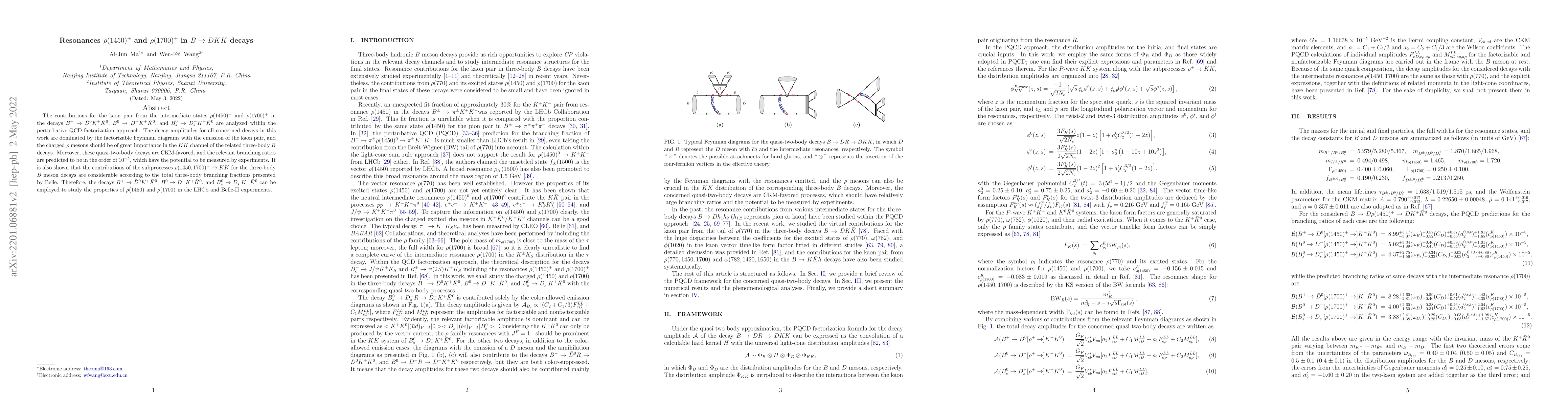 This paper analyzes the contributions of $\rho(1450)^+$ and $\rho(1700)^+$ resonances in $B \to D KK$ decays using the perturbative QCD factorization approach, predicting significant branching ratios of $10^{-5}$ for these favored CKM decays. The study suggests these decays can be used to study the properties of $\rho(1450)$ and $\rho(1700)$ in future LHCb and Belle-II experiments.
