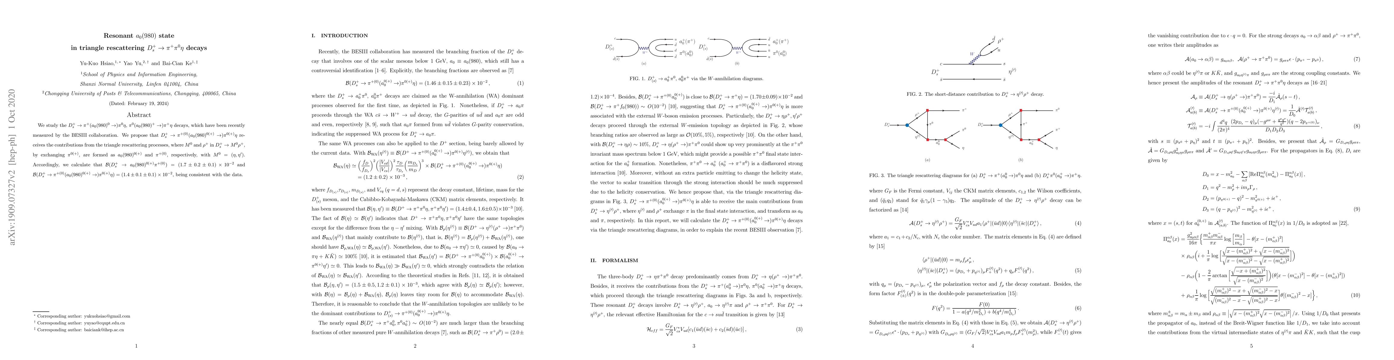 This paper investigates the decay processes $D_s^+\to \pi^+\pi^0\eta$ involving the $a_0(980)$ state, proposing that triangle rescattering contributes to these decays. The calculated branching fractions are consistent with experimental data from the BESIII collaboration.