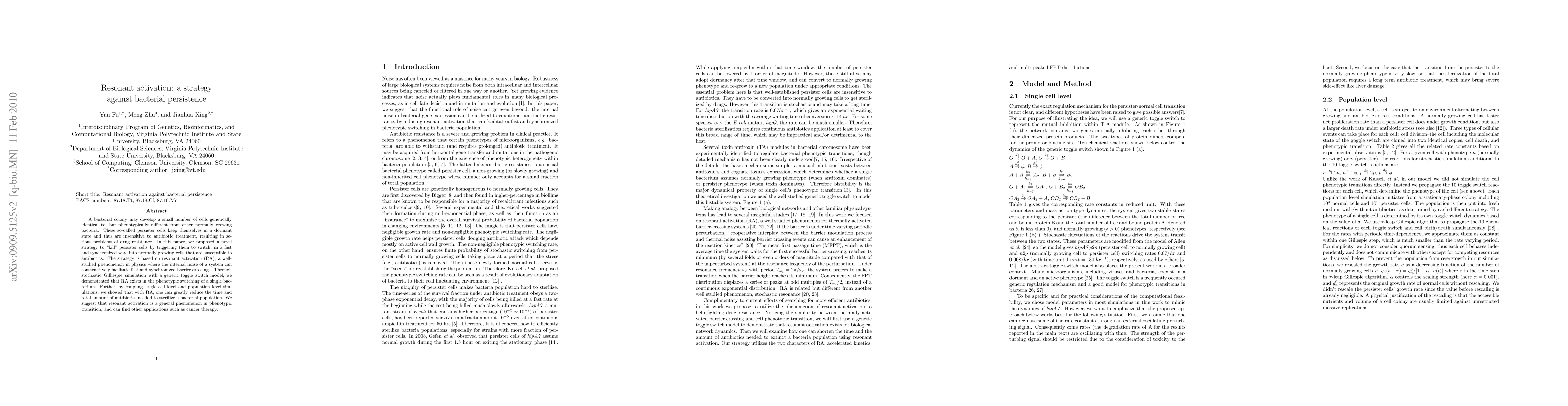 This paper proposes a novel strategy using resonant activation to convert persister cells into susceptible bacteria, thereby reducing antibiotic resistance. Through simulations, the authors demonstrate that resonant activation can significantly decrease the time and amount of antibiotics needed to treat bacterial infections.