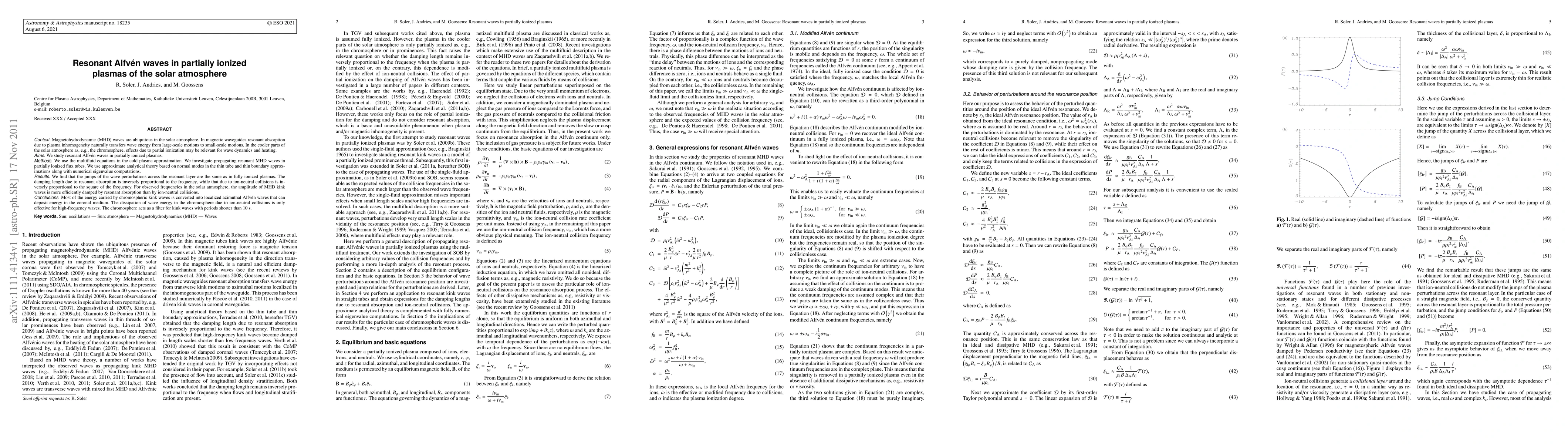This study investigates resonant Alfven waves in partially ionized plasmas of the solar atmosphere, finding that resonant absorption efficiently converts chromospheric kink waves into localized Alfven waves, while ion-neutral collisions are more effective for damping high-frequency waves, acting as a filter for short-period kink waves.