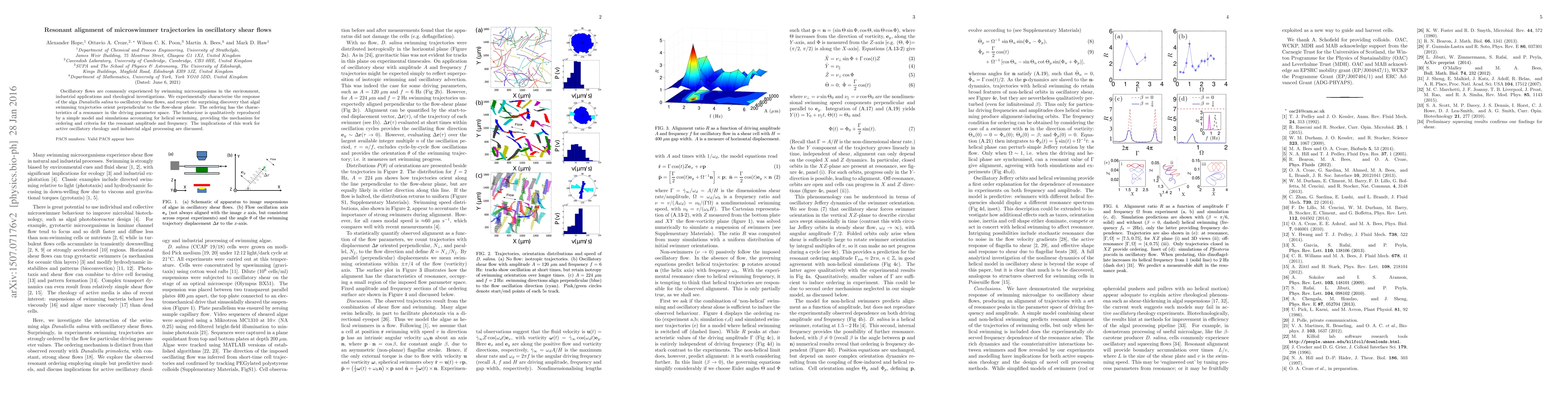 The paper presents a simple model that predicts resonant alignment of swimming cells in oscillatory shear flows, incorporating both shear and non-helical swimming, and extends it to include helical swimming to match experimental observations.