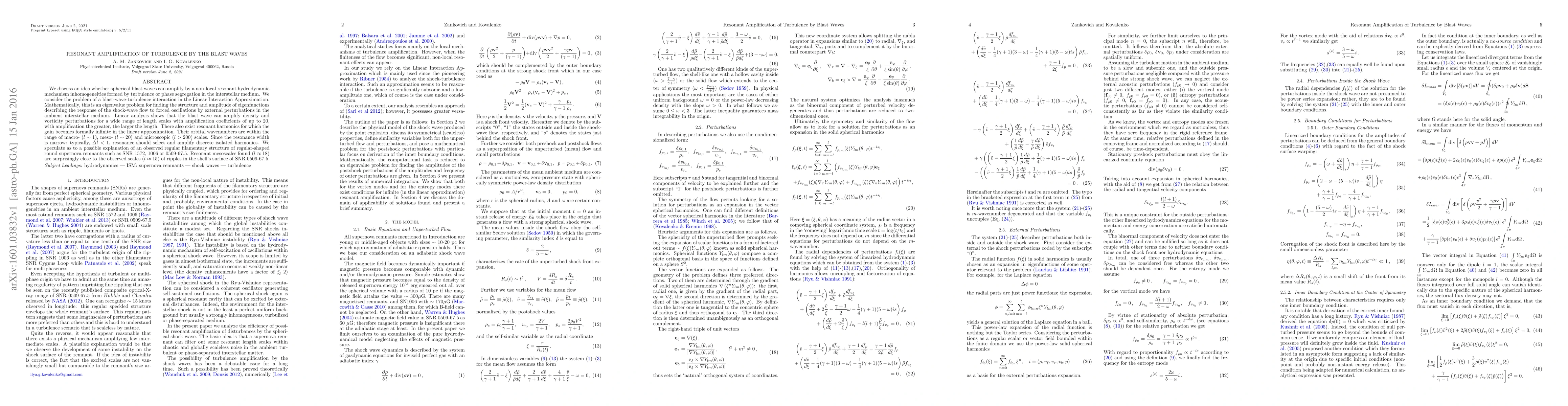 This paper explores how spherical blast waves can amplify turbulence in the interstellar medium through resonant hydrodynamic mechanisms. Linear analysis reveals that the blast wave can significantly amplify density and vorticity perturbations across various length scales, with resonant harmonics potentially leading to infinite amplification within a narrow resonance width.