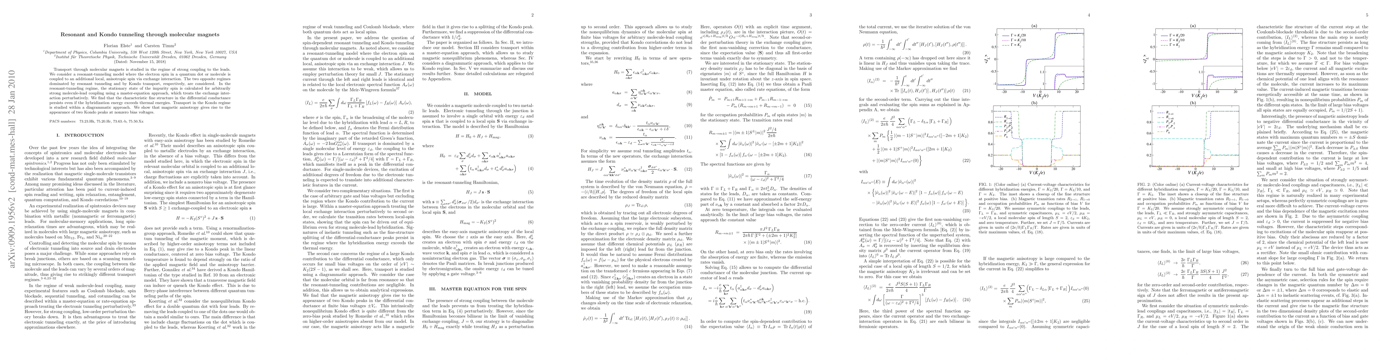 This research explores transport mechanisms through molecular magnets in strong coupling to leads, focusing on resonant tunneling and Kondo effects. It demonstrates that fine structure in differential conductance persists even when hybridization energy surpasses thermal energies, while magnetic anisotropy causes a split in the Kondo peak at low biases.