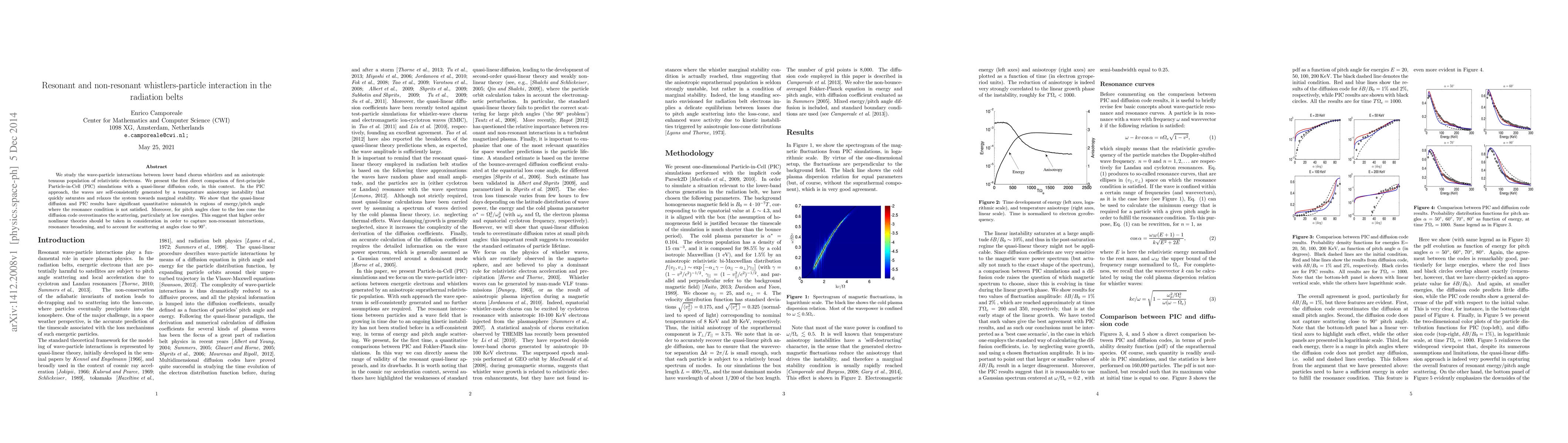This study compares Particle-in-Cell (PIC) simulations with a quasi-linear diffusion code to analyze whistler-electron interactions in Earth's radiation belts. Key findings reveal significant quantitative discrepancies between the methods, especially outside resonance conditions and near the loss cone. The research suggests that higher-order nonlinear theories are necessary to accurately model non-resonant interactions and scattering at large angles, providing crucial insights into relativistic electron dynamics.
