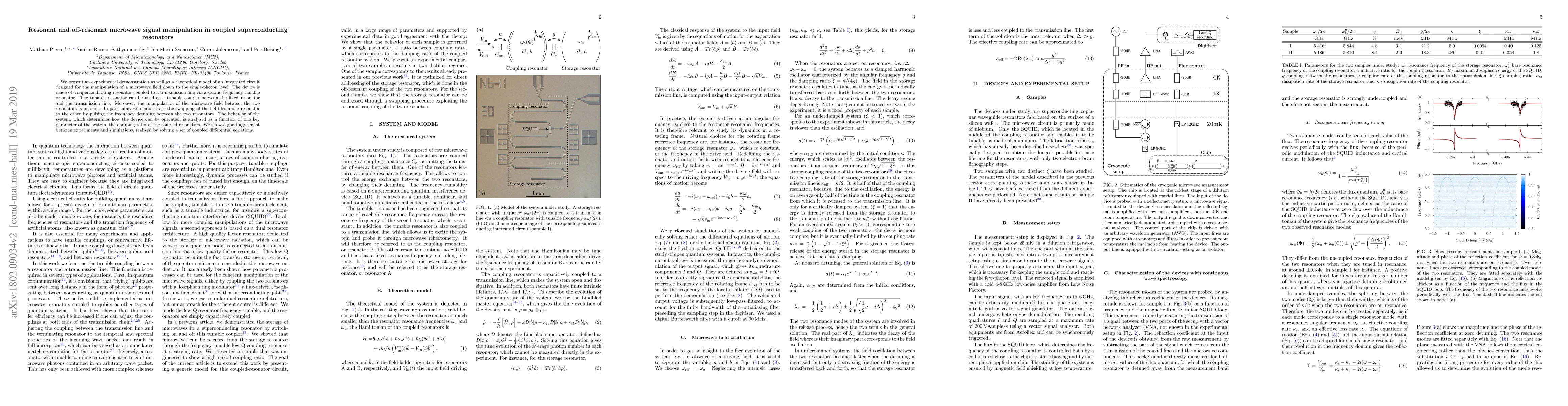 This paper demonstrates an integrated circuit using coupled superconducting resonators for precise microwave field manipulation, including single-photon level control. The system features a tunable coupler and shows successful field swapping between resonators, with theoretical and experimental results aligning well.