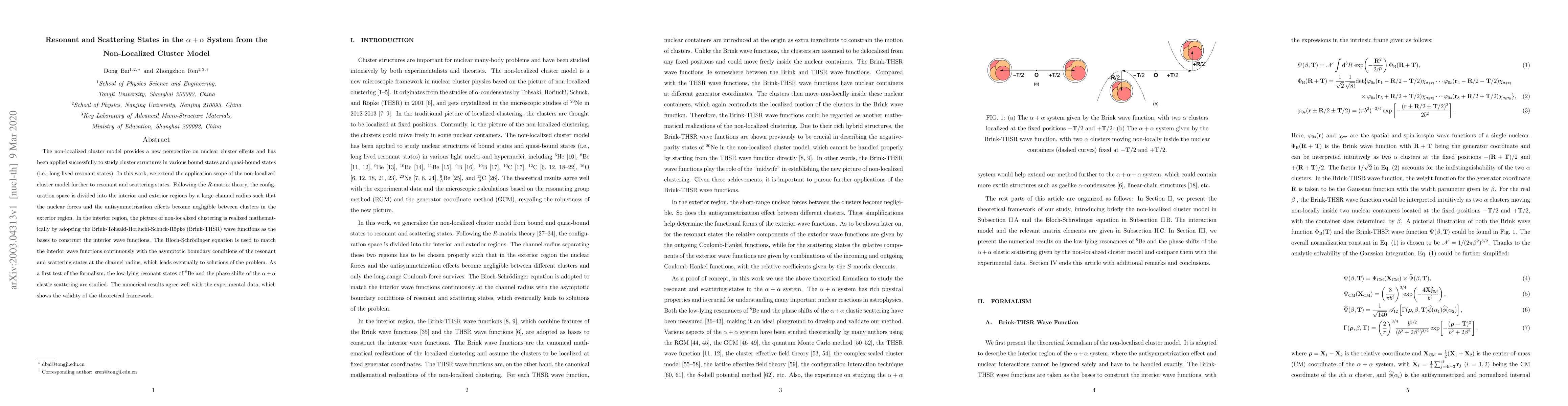 This paper applies the non-localized cluster model to study resonant and scattering states in the $\alpha+\alpha$ system, using the Brink-THSR wave functions and the Bloch-Schr\"odinger equation for matching. The model's effectiveness is demonstrated through agreement with experimental data on ${}^{8}$Be resonant states and $\alpha+\alpha$ scattering phase shifts.