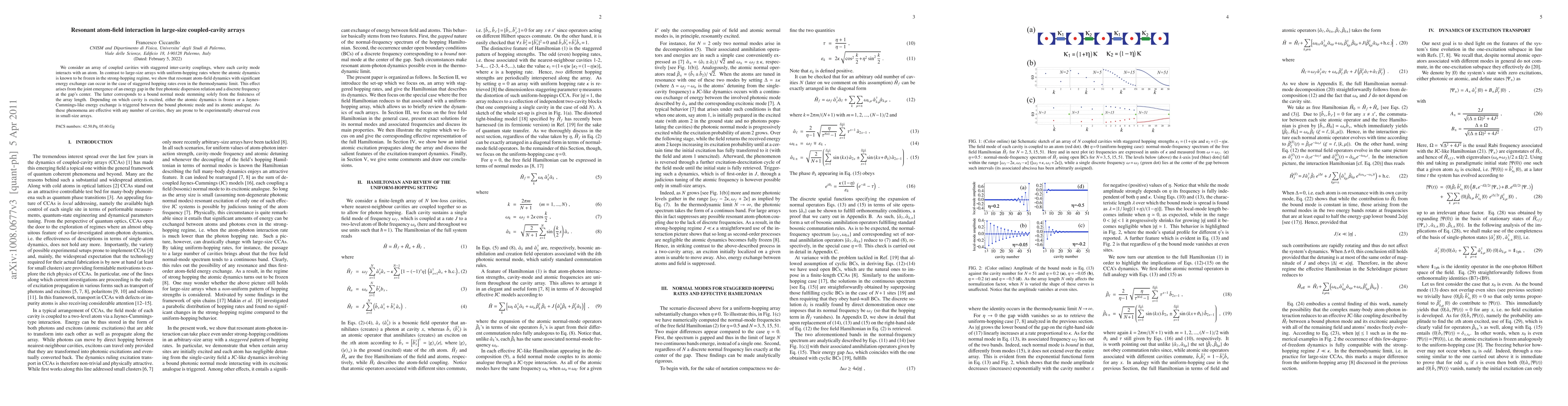 This paper investigates resonant atom-field interactions in large-size coupled-cavity arrays with staggered inter-cavity couplings, demonstrating that significant energy exchange can occur even in the thermodynamic limit, unlike arrays with uniform-hopping rates. The effect is due to an energy gap in the photonic dispersion and a bound normal mode arising from the array's finite length.