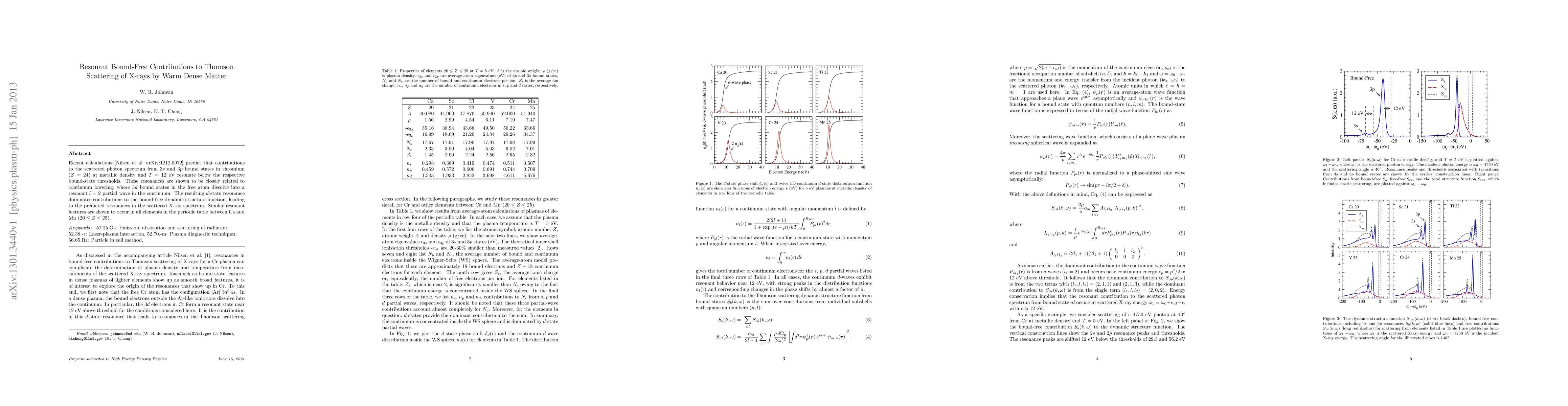 Recent calculations [Nilsen et al. arXiv:1212.5972] predict that contributions to the scattered photon spectrum from 3s and 3p bound states in chromium (Z=24) at metallic density and T=12 eV resonate below the respective bound-state thresholds. These resonances are shown to be closely related to continuum lowering, where 3d bound states in the free atom dissolve into a resonant l=2 partial wave in the continuum. The resulting d-state resonance dominates contributions to the bound-free dynamic structure function, leading to the predicted resonances in the scattered X-ray spectrum. Similar resonant features are shown to occur in all elements in the periodic table between Ca and Mn (20 <= Z <= 25).