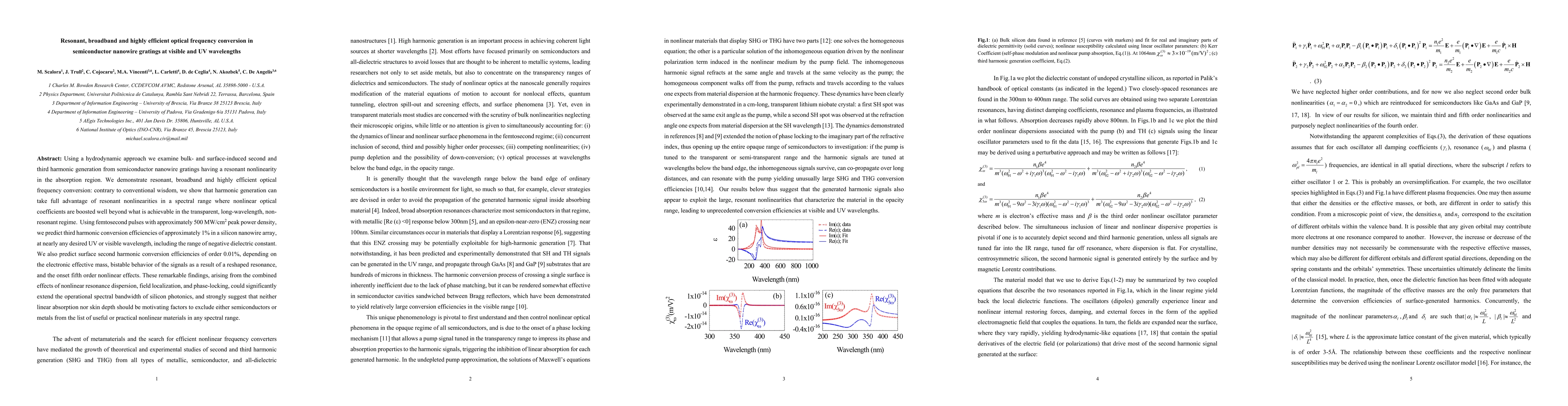 Researchers demonstrate highly efficient optical frequency conversion using semiconductor nanowire gratings at visible and UV wavelengths, contrary to conventional wisdom.