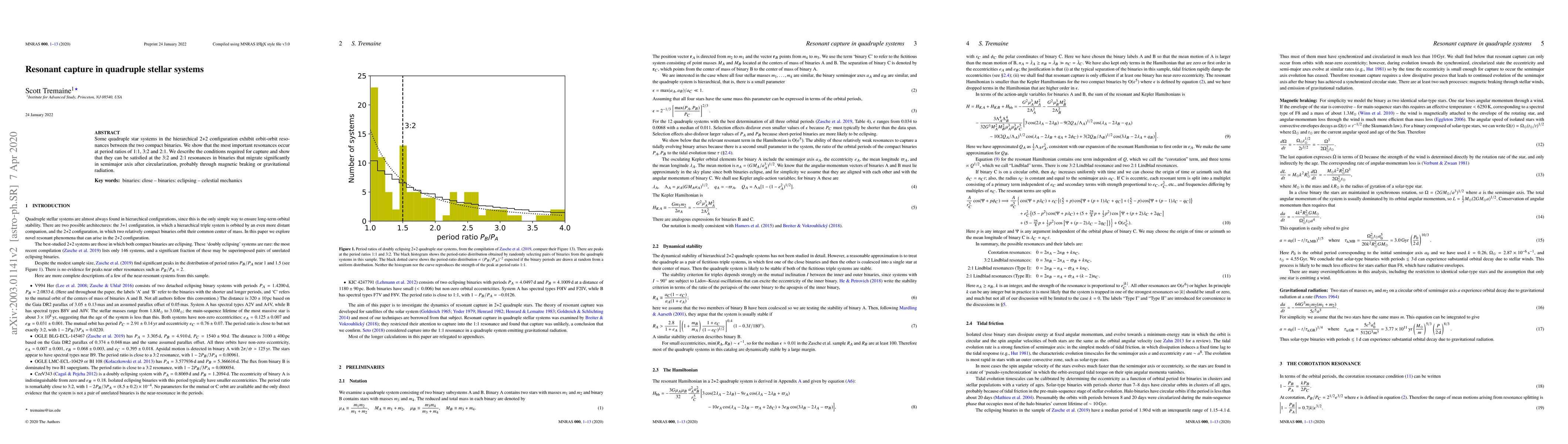 Some quadruple star systems in the hierarchical 2+2 configuration exhibit orbit-orbit resonances between the two compact binaries. We show that the most important resonances occur at period ratios of 1:1, 3:2 and 2:1. We describe the conditions required for capture and show that they can be satisfied at the 3:2 and 2:1 resonances in binaries that migrate significantly in semimajor axis after circularization, probably through magnetic braking or gravitational radiation.