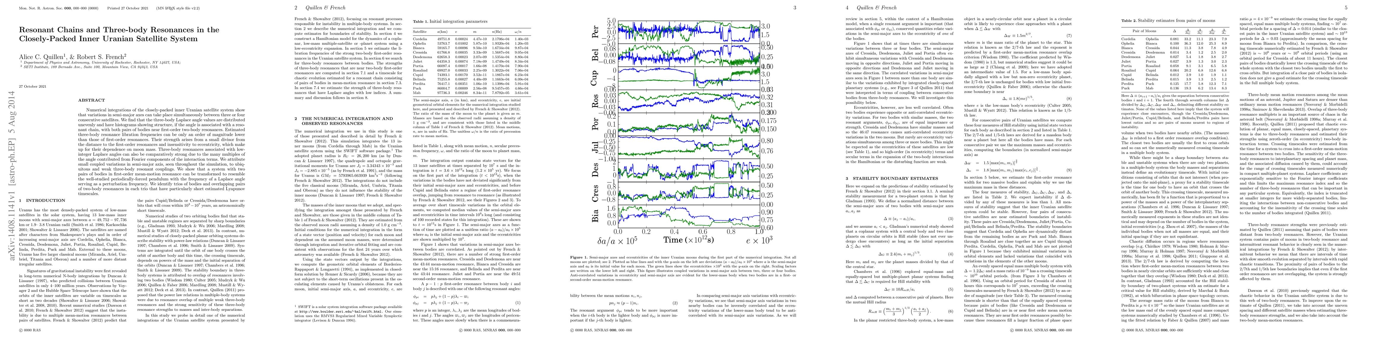 Numerical integrations of the closely-packed inner Uranian satellite system show that variations in semi-major axes can take place simultaneously between three or four consecutive satellites. We find that the three-body Laplace angle values are distributed unevenly and have histograms showing structure, if the angle is associated with a resonant chain, with both pairs of bodies near first-order two-body resonances. Estimated three-body resonance libration frequencies can be only an order of magnitude lower than those of first-order resonances. Their strength arises from a small divisor from the distance to the first-order resonances and insensitivity to eccentricity, which make up for their dependence on moon mass. Three-body resonances associated with low-integer Laplace angles can also be comparatively strong due to the many multiples of the angle contributed from Fourier components of the interaction terms. We attribute small coupled variations in semi-major axis, seen throughout the simulation, to ubiquitous and weak three-body resonant couplings. We show that a system with two pairs of bodies in first-order mean-motion resonance can be transformed to resemble the well-studied periodically-forced pendulum with the frequency of a Laplace angle serving as a perturbation frequency. We identify trios of bodies and overlapping pairs of two-body resonances in each trio that have particularly short estimated Lyapunov timescales.